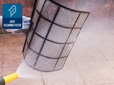 Pentru a oferi un aer mai curat si cu mai multa prospetime aparatul Daewoo este dotat cu un model avansat de sistem activ de filtrare lavabil pentru praf si polen avand un flux inalt de aer dar silentios. Acest sistem de filtrare face si o filtrare antibacteriana ce combate mucegaiul, bacteriile pentru ca aerul sa devina mai sanatos. O functie convenabila de reminder pe panoul de control indica momentul dupa 200 de ore de functionare, cand este necesara o curatare a sistemului de filtrare.