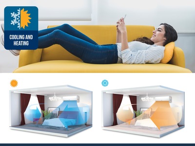 Functia de incalzire se realizeaza dupa principiul pompei de caldură spre deosebire de aparatele care folosesc rezistenţa electrica. Pompa de caldura extrage caldura din aerul exterior şi o aduce în interior, de aceea aparatele care asigura racire si încalzire se mai numesc si pompe de caldura. Pentru racire, sistemul este inversat, aparatul extrage caldura din aerul din interior si o cedeaza afara. Agentul care face acest transfer de energie este o substanta R32 cu doua starii fizice, de gaz si de lichid in functie de parametri fizicii de lucru. Cu aceasta tehnologie consumul de energie electrica se reduce semnificativ fata de cel al rezistentelor electrice, fiind de 3 ori mai mic. Acest sistem funcționeaza pe încalzire la temperaturi exterioare cuprinse între -15°C si +30°C. La inceputul procesului de incalzire si dupa procesul de racire, ventilatorul interior incepe sa functioneze doar cand schimbatorul de caldura din interior este cald pentru a nu a transmite flux de aer rece la inceperea procesului. Iar cu functia +8°C Heating sistemul porneste automat cand temperatura scade sub +8°C, asigurand temperatura de garda atunci cand incaperea este nelocuita mai mult timp.