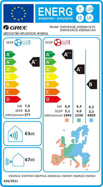 In plus acest model are eficienta energetica in functie de sezon cu coeficient de randament SEER de 6,5 la racire si de (4 pana la limita de -10°C), de (5,1 intre -10°C pana la limita de -25°C) sau de (3,3 intre -25°C pana la limita extrema de -30°C), coeficient de randament SCOP la incalzire medie. Aceste date reflectă consumul real de energie al pompe de căldură Gree, cu emisii de CO2 mai scăzute.