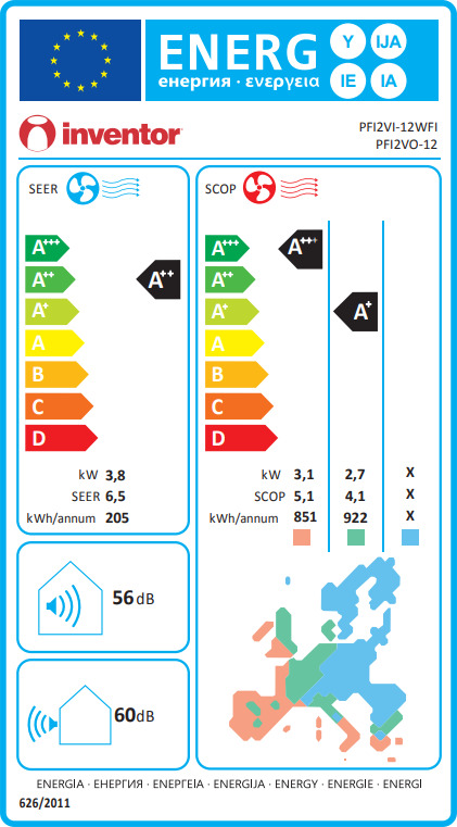 In plus acest model are eficienta energetica in functie de sezon cu coeficient de randament SEER de 6,5 la racire si de (4,1 pana la limita de -10°C) sau de (5,1 intre -10°C pana la limita de -15°C), coeficient de randament SCOP la incalzire medie. Aceste date reflectă consumul real de energie al pompe de căldură Inventor, cu emisii de CO2 mai scăzute.