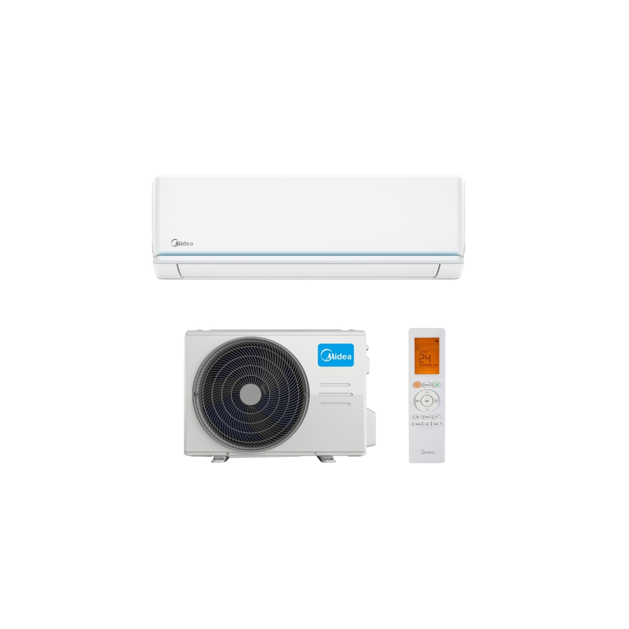 In plus unitatea externa a acestui model este dotata din punct de vedere tehnologic cu un strat din aur Gold Fin de protectie ce protejeaza suprafata schimbatorului de caldura impotriva uzurii si coroziunii. Datorita acestei protectii acest model de aer conditionat poate fi montat si in zone marine de coasta, cu salinitate ridicata. Unitatea din interior al acestui sistem de climatizare de la Midea, are orificiile de absorbite si evacuare ale aerului ventilat largite, precum si ventilatorul (turbina) care este construit in asa fel, incat sa ofere un schimb mai bun de caldura si un volum mai mare de aer. Pentru un plus de siguranta compresorul unitatii externe rezista si la fuctuatiile de tensiune ale retelei electrice, pe o plaje de la 134 de volti pana la maxim 264 de volti fara sa afecteze aparatul. In plus acest aparat nu poate reporni timp de 3-4 minute dupa ce se opreste, pentru a proteja compresorul. Zgomotul produs pe cea mai puternica dintre cele 4 trepte de ventilare ale unitatii interioare, ajunge de la 20 la 41 dB, o valoare insuficienta pentru a putea produce un disconfort acustic. Unitatea de afara are un zgomot maxim de 57 dB. Aparatul fiind economic la sfarsitul luni nu va creste factura la curent cu mai mult de 20-30%.
