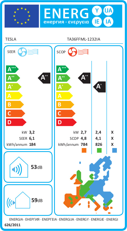 In plus acest model are eficienta energetica in functie de sezon cu coeficient de randament SEER de 6,1 la racire si de (4,1 pana la limita de -7°C) sau de (4,8 intre -7°C pana la limita de -15°C), coeficient de randament SCOP la incalzire medie. Aceste date reflectă consumul real de energie al pompe de căldură Tesla, cu emisii de CO2 mai scăzute.