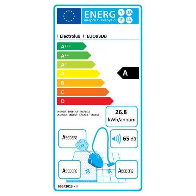 Cu peria din dotarea aspiratorului Electrolux, suprafata de absorbtie va fi mai mare iar zonele greu accesibile vor fi mai usor de curatat. Capul de aspirare universal Silent Flow Motion Extreme din dotare cu nivel de zgomot foarte mic, inlatura in mod eficient praful depus pe covoare, presuri, gresie, parchet sau de pe orice suprafata. Aspiratorul Electrolux cu eficienta energetica A avand un consum de energie redus cu pana la 60%, este conceput sa ofere randament maxim cu un consum de energie optimizat. Eficienta energetica oferita de Electrolux EUO93DB este foarte buna, avand clasa A cu un consum anual de energie de 26,8 kWh/an.