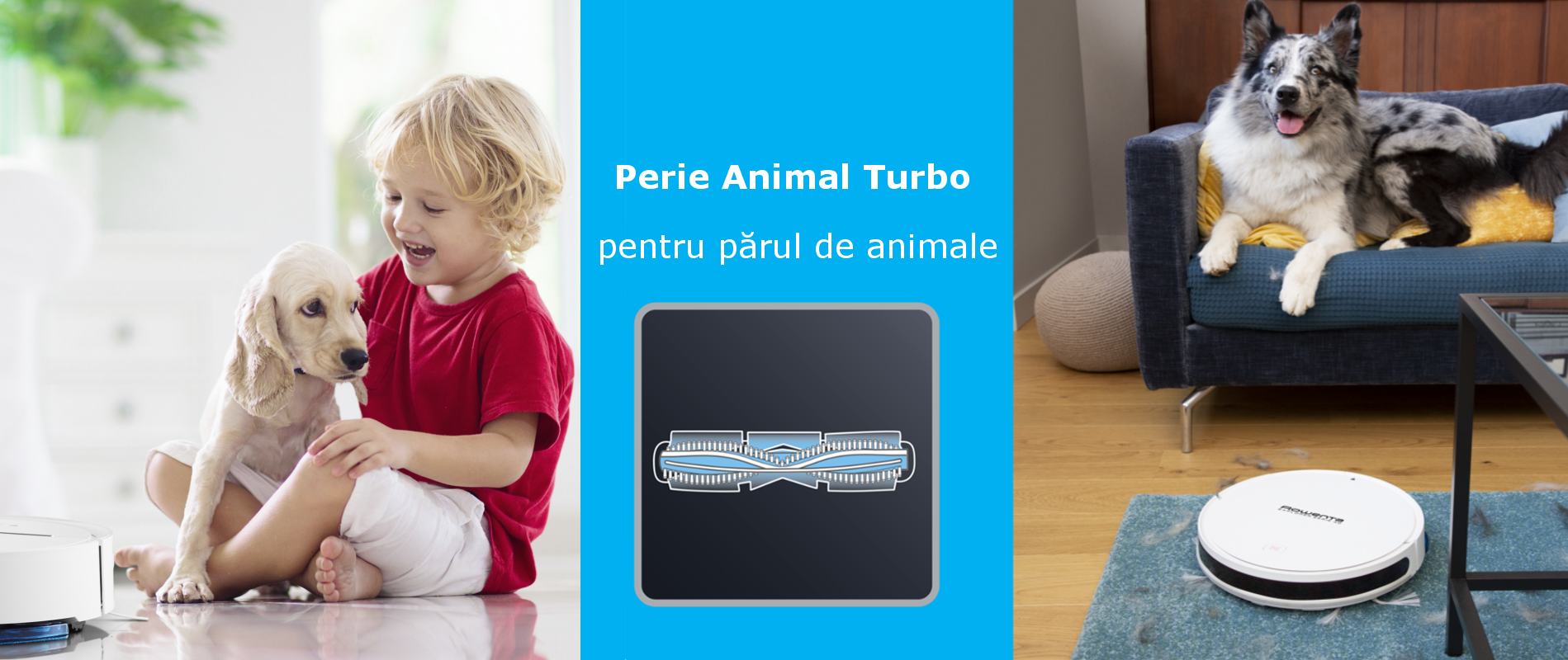 Cu peria principala Turbo Animal adecvata pentru parul de animale de companie in forma de V, care se roteste, retine toate particulele intalnite, iar robotul poate realiza o deplasare mai usoara in special pe suprafetele acoperite cu covoare. In acest fel, robotul poate obtine o curatare avansand, inainte si inapoi, pentru o curatare mai aprofundata si mai sistematica intr-o perioada mai scurta de timp.