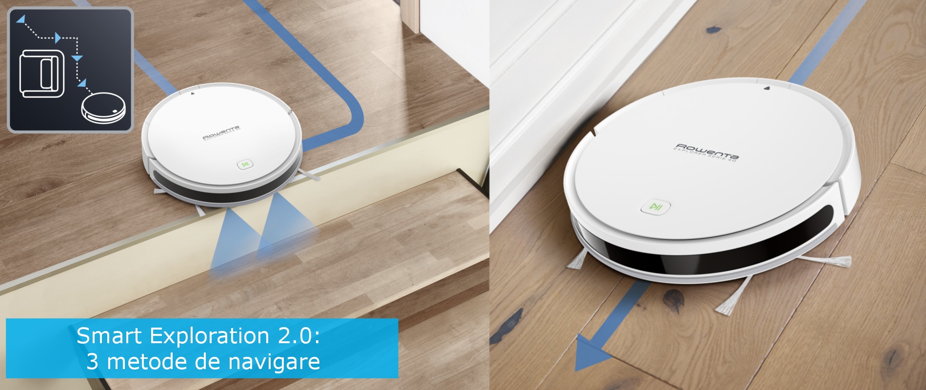 Iar sistemul inteligent datorita senzorilor si a procesorului performant detecteaza tipul podelei si ajusteaza automat puterea de aspirare pentru eficienta maxima. Performanta aparatului este la fel de ridicata ca cea a unui aspirator de 150 W. Testat de institutul de teste independent SLG pentru aspirarea murdariei de pe suprafete dure. Utilizarea extrem de eficienta a energiei ne ajuta sa economisim pana la 60% din consumul de energie in comparatie cu un aspirator obisnuit. Pentru a obtine o asemenea performanta aparatul din punct de vedere tehnologic este dotat cu doua procesoare puternice si un sistem de detectie cu infrarosu care va detecta si memora arhitectura spatiului unde a fost programat sa faca curat. Cu ajutorul sistemului de detectie performant si a celor doua procesoare, aparatul va crea o harta completa a locuintei, stabilind singur cel mai eficient traseu de curatare. Senzorii cu infrarosu din dotare pot detecta particularitatile tridimensionale ale obiectelor din jur sau chiar anumite texturi si culori ale acestora, iar senzorul de inaltime va impiedica dispozitivul sa cada de la inaltime cand actioneaza intr-un spatiu cu denivelarii, protejand aparatul.