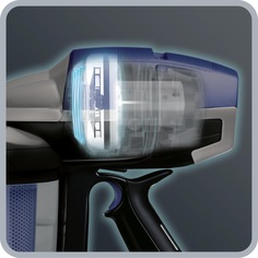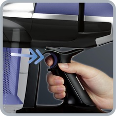Pentru a pune in functie acest aspirator, aparatul este dotat cu un buton de pornire oprire de tip On/Off si un comutator de sarcina motor de forma unui tragaci cu sarcina variabila. Manerul de format ergonomic si mecanismul de declansare, nu necesita o presiune constanta pe tragaci, fara niciun efort depus in utilizare.