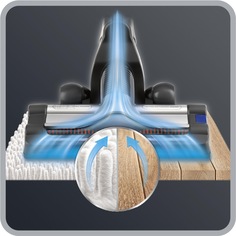 Capul de aspirare motorizat cu perie rotativa Easy Brush integrata (6500 rpm) si suport special in jurul periei, pentru concentrarea fluxului de aer aspirat, ofera cea mai buna performanta de curatare pe tipul de podele dure si covoare. Capul de aspirare ultra subtire aspira praful chiar si dupa piese de mobilier mici, facand praful vizibil in cele mai intunecate suprafete cu ajutorul LED-urilor din dotare. Acest tip de perie rotativa integrata urmatoarele caracteristici: Tehnologic are roti realizate din material moale pentru a evita deteriorarea parchetului, suport special in jurul periei pentru concentrarea fluxului de aer aspirat, canale special proiectate pe toata suprafata periei pentru o aspirare eficienta a prafului.