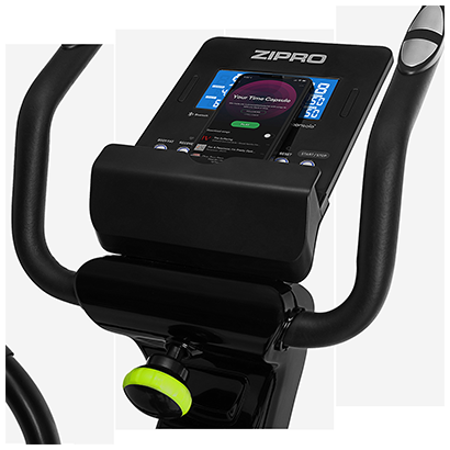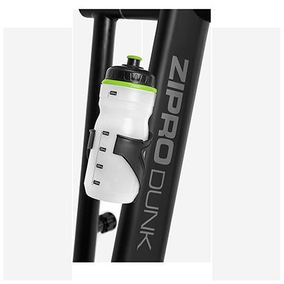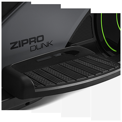 Bicicleta eliptica Zipro Dunk functioneaza precum o bicicleta stationara si va permite sa efectuati exercitiile in propria locuinta, pe terasa, afara in curte sau hoteluri si sali de fitness cu trafic redus. Aparatul are un sistem de franare electromagnetic controlat digital cu 16 nivele de reglare a rezistentei la manetele de pedalare. Acest sistemul poate fi accesat de pe panoul de comanda, de variatorul electronic de presiune cu sistem de franare electromagnetic, fara a opri antrenamentul. Acest model foloseste un electromagnet prin inductie, care mareste sau micsoreaza campul magnetic cu ajutorul unui variator electronic rezultand forte de franare variabile. Acest mecanism de rezistenta/franare, implica gradul de dificultate cu care vei pedala in functie de modul in care este acesta ajustat. Franarea electromagnetica prin inductie are meritul ca permite oprirea pedalelor in acelasi moment cu incetarea miscarii picioarelor. Cu acest sistem de franare utilizatorii vor folosi mai usor pedalele, insa fara sa fie afectati de legile inertiei, iar rezistenta la pedalare va fi constanta, deci se vor depune eforturi mai mari, care eficientizeaza antrenamentul. Cu o gama de 16 nivele de efort si de intensitate variabilă, ergometrul stimuleaza si motiveaza exercitiul utilizatorilor de a-si depasi limitele fizice. In plus acest model, din punct de vedere tehnologic este dotat cu o volanta avand un diametru de 50 cm, cu o greutate de 12 kg, cu momentul inertiei de 12-15 Kg, care determina miscarea in ambele sensuri. Masa oscilanta indica performante optime pentru exercitiile de tip cardio, care solicita muschii tuturor membrelor si ai torsului. Rolul volantei este de a asigura o miscare cat mai lina datorita inertiei, iar efectele se vor resimti asupra organismului, protejand articulatiile, cat si asupra aparatului in sine, care va avea o durata de viata mai lunga. Centrul de greutate al aparatului are o baza de sustinere ferma cu compensatoare de nivel spate si fata pentru o bună stabilitate a dispozitivului. Modelul este echipat in plus si cu roti pentru transport montate in fata si cu manipulare usoara.