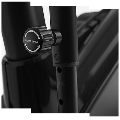 Suprafata suportului de sprijin pentru talpa piciorului este de 34 x 12 cm. Iar lungimea pasului de 38 cm cu distanta dintre pedale de 19 cm, este conceput pentru un antrenament care protejeaza articulatiile piciorului. Inclinatia pedalei este ajustabila dupa preferinte pe 2 nivele de inclinatie, pentru mai mult confort. De acum intreaga familie se poate bucura de o lungime a pasului potrivita fiecaruia.
