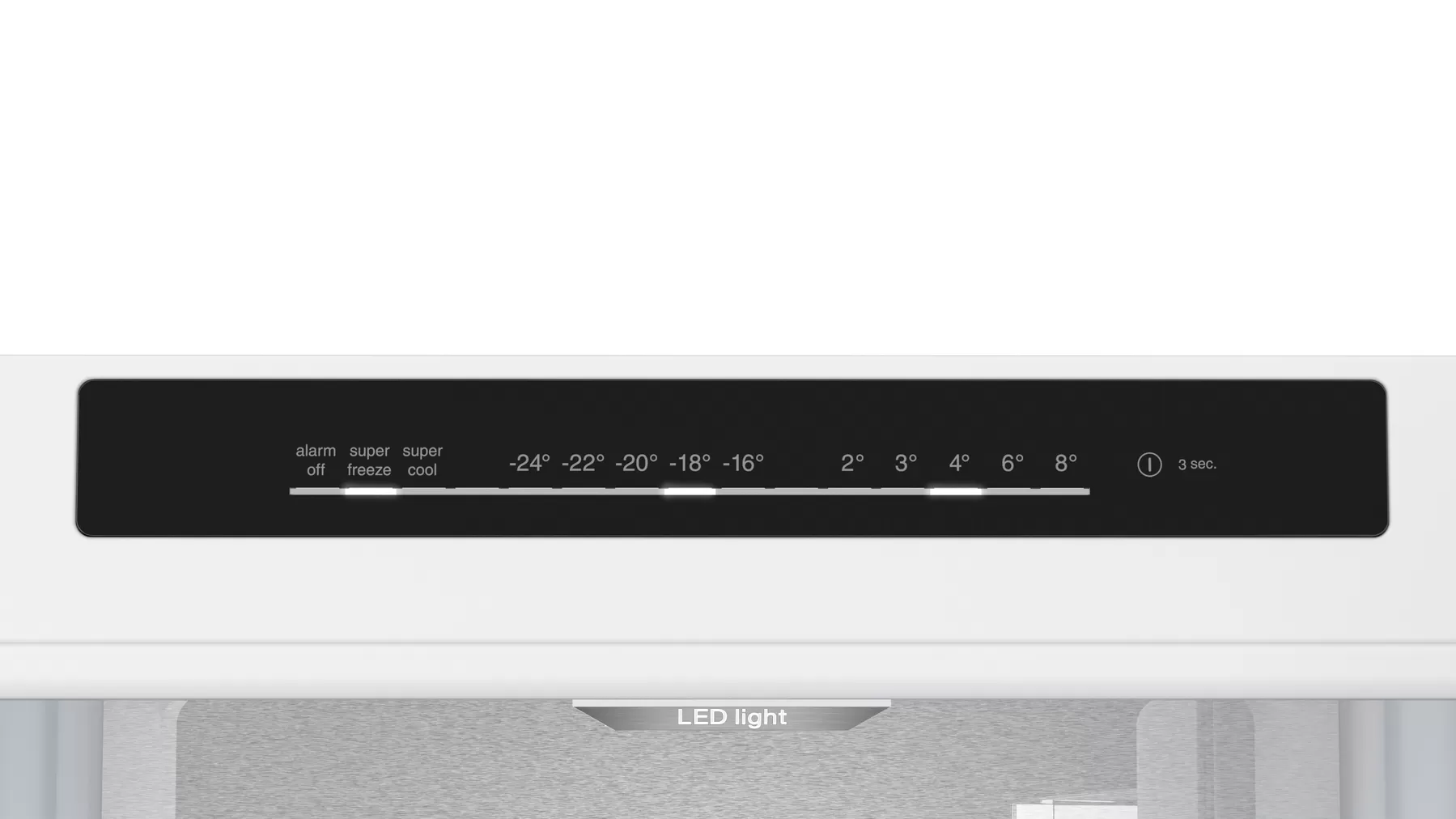 Panoul de comanda cu display LCD postat in interior, cu controlul electronic, monitorizeaza 2 zone de temperatura ce pot fi reglate independent. Astfel elementele de comanda ale aparatului contin: Reglare si semnalizare temperatura in congelator; Reglare si semnalizare temperatura in frigider; Functie de Super-congelare; Functie de Super-racire; Mod de functionare Eco; Mod de functionare Sabat; Indicator avertizare pentru sectiune congelator; Sistem de avertizare pentru usa deschisa. Elementele de comanda contin: O tasta On/Off de pornit oprit; Tasta de reglare a temperaturi prin apasari succesive. Temperatura in zona de refrigerare se regleaza de la +2°C pana la +6°C iar in zona de congelare de la minim -16°C la -24°C. Daca accesam comutatorul de temperatura, de fiecare data cand tasta este apasata, temperatura setata se afiseaza pe ecranul LCD. Din fabrica sunt recomandate ca in zona de refrigerare temperatura sa fie de +4°C, iar in zona de congelate de -18°C. La acest model se memoreaza ultima temperatura reglata, iar temperatura care a fost reglata este afisata pe indicatorul de temperatura de pe display.