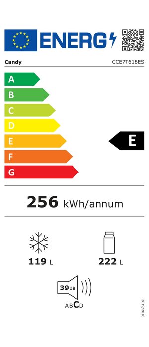 Eficienta energetica oferita de combina frigorifica Candy CCE7T618ES este foarte buna, avand clasa A++, dupa vechea eticheta energetica. Consumul energetic ramane la fel, sa schimbat numai clasa de etichetare energetica si modul de calcul.