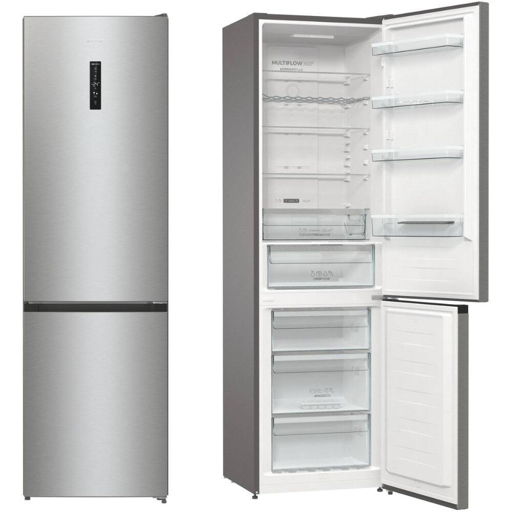 Pe partea de functii combina frigorifica Gorenje NRK620DA2XL4 detine: Sistem de avertizare sonora in cazul in care usa nu este inchisa corect sau sta deschisa mai mult de 2 minute. Aceasta functie preveni cresterea temperaturii in interiorul combinei, economisind energie si pastrand alimentele in siguranta. Semnal sonor si luminos de avertizare la creşterea temperaturii in congelator dupa o pana de curent. Cu functia automata Super Frost procesorul reduce rapid temperatura la –24°C si astfel alimentele pastreaza toate vitaminele. De indata ce mancarea este complet inghetata, functia automata Super Frost comuta inapoi la modul normal dupa maxim 48 ore in functie de incarcatura si astfel ajuta la economisirea energiei electrice. Daca exista o intrerupere accidentala a combinei cu energie electrica in timp ce se deruleaza functia de Super congelare, functia va reporni atunci cand sursa de energie electrica se va activa din nou. Senzorii Fresh Sense monitorizeaza in mod constant temperatura ambianta, pe cea din frigider si pe cea din congelator. Rezultatul este o temperatura constanta in interiorul frigiderului, independent de temperatura exterioara. Cu functia Eco Mode in cazul unei absențe prelungite, frigiderul poate fi setat să funcționeze în modul de economisire a energiei, ușa fiind închisă tot timpul. In plus Gorenje are si functia de ionizare ce neutralizeaza bacteriile si microorganismele care genereaza mirosurile neplacute in interiorul frigiderului. Aerul din interioul aparatului frigorific este mentinut curat, astfel alimentele pot fi pastrate pentru o perioada mai lunga de timp.