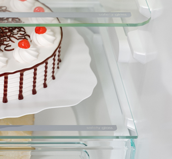 Rafturile de depozitare alimente Vario Shelf sunt in numar de 5 realizate din sticla securizata, ce se curăță ușor și au o rezistență foarte bună la greutăți mari. Poti plasa recipiente grele, de pana la 25 de kg, pe orice raft. Aceste rafturi sunt dotate si cu sistem anti-alunecare. Un mare avantaj al acestui model este ca pozitia rafturilor 4 din 5 poate fi ajustata dupa nevoi in 2 trepte de maximum cativa centimetri. Acest lucru este util deoarece se intampla frecvent ca aceasta distanta sa fie cu cativa milimetri mai mica decat inaltimea standard vaselor sau a borcanelor din comert.