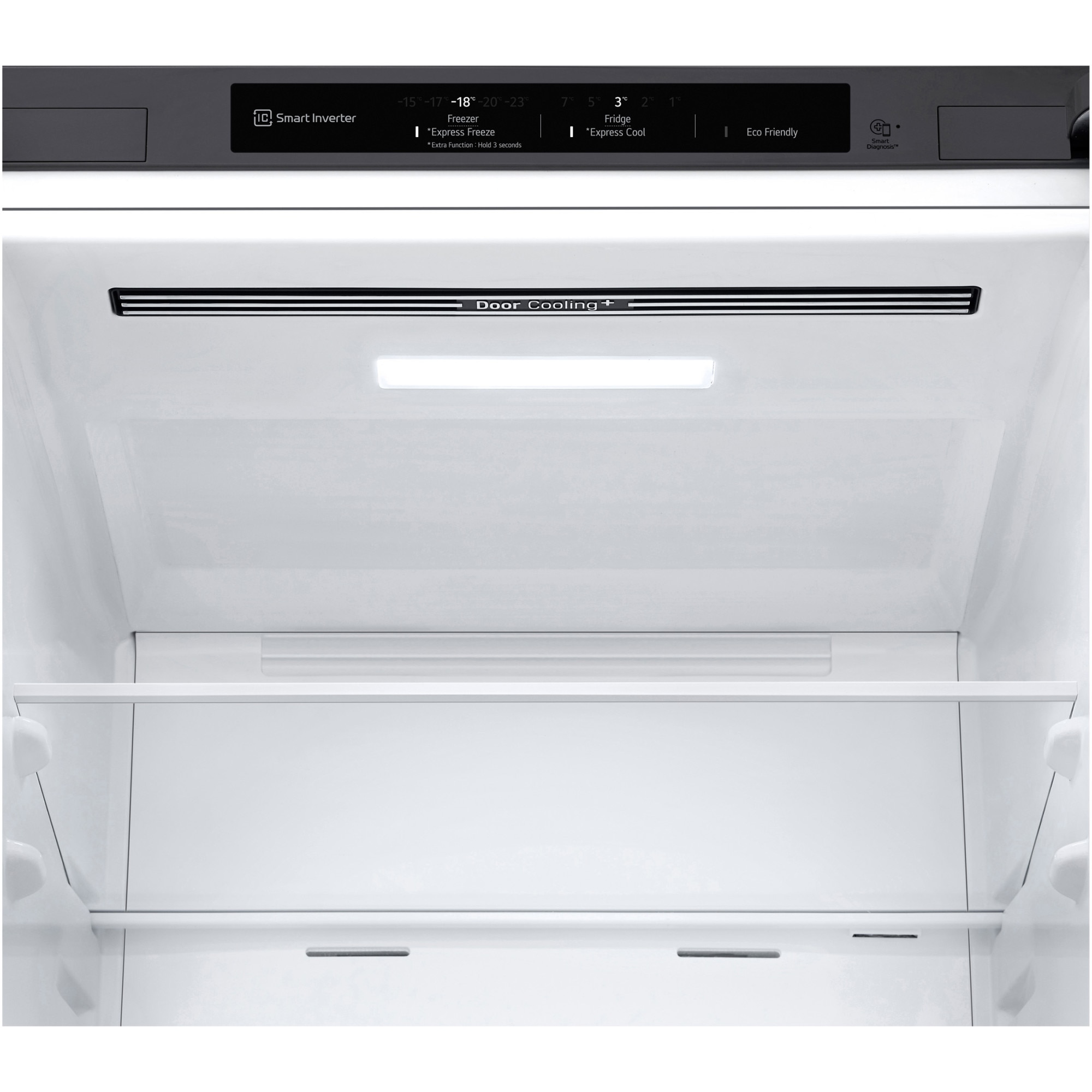 Aparatul are iluminare Soft LED in zona de refrigerare sus, care este cu 39% mai luminos decat sistemele anterioare. Pentru un plus de confort corpul de iluminat a fost conceput cu un sistem anti-orbire si permite o mai buna difuzie a luminii in zona de refrigerare. Corpul de congelare este pozitionat in partea inferioara a combinei avand 3 compartimente tip raft separate unele fata de altele. Compartimentele de mari dimensiuni ale congelatorului ofera optiuni multiple de congelare, inclusiv congelarea rapida. Ai compartimente speciale pentru orice tip de congelare plus o tava de gheata.
