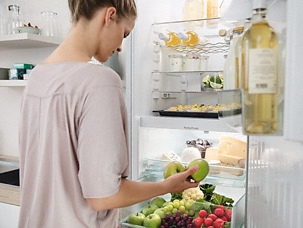 Miele cu un singur compresor si 2 circuite de racire este un aparat frigorific practic, dotat cu tehnologii de varf, perfect pentru o familie numeroasa, cu diverse preferințe culinare. Acest model cu tehnologie de racire dinamica prin ventilatie cu aer cu umiditate controlata are un volum net generos pe frigider de 243 l. Rafturile de depozitare alimente Comfort Clean sunt in numar de 5 realizate din plastic SAN de inalta calitate, ce sunt rezistente la zgarieturi, substante chimice temperaturi extreme si pot fi spalate usor si in conditii de igiena in masina de spalat vase (pana la maxim 55ºC). Nu mai este necesar sa curatati rafturile manual. Poti plasa recipiente grele, de pana la 25 de kg, pe orice raft. Un mare avantaj al acestui model este ca pozitia rafturilor poate fi ajustată după nevoi în trepte de maximum câţiva centimetri. Acest lucru este util deoarece se întâmplă frecvent ca această distanţă să fie cu câţiva milimetri mai mică decât înălţimea standard vaselor sau a borcanelor din comerţ. Interiorul zonei de refrigerare ofera un spatiu mai mare XL si confort sporit pentru pastrarea alimentelor. Acest model are si un raft special, Multi Shelf extrem de flexibil, cu suporturi speciale pentru sticle, ce se poate adapta oricarei nevoi. Poate fi un raft pentru depozitarea alimentelor oriunde in frigider, sau un gratar special pentru sticle, cu suporturi ce pot tine pana la 9 sticle de marime medie. Acest model are sistem de iluminare Light sus ce ilumineaza interiorul zonei de refrigerare fara a crea efecte de orbire. In partea inferioara a zonei de refrigerare se afla si un compartiment mare etans Daily Fresh. Mecanismul culisant de deschidere a sertarului asigura niveluri superioare ale umiditatii. Datorita acestui lucru, fructele si legumele se mentin proaspete si apetisante pentru o perioada considerabil mai mare. Acest spatiu are o temperatura constanta de +3°C si o umiditate la fel controlata. Datorita tehnologiei de racire dinamica aparatul Miele la fiecare deschidere a usi de acces asigura cea mai buna recuperare a temperaturii si mentine, de asemenea, controlul temperaturii constante. La un frigider obisnuit cand este deschisa usa, temperatura creste brusc, iar mancarea este expusa unui soc termic care o face sa se altereze mai repede. Usa frigiderului reversibila cu maner vertical integrat avand deschidere spre dreapta are sistem de deschidere Soft Close (sistem de inchidere amortizata a usii) si un sistem de auto-inchidere la un unghi mai mic de 30º, este echipata cu 4 suporturi fixe de diferite marimi care lasa la latitudinea noastra ocuparea lor cu o diversitate de produse. Suporturile ce sunt realizate din plastic SAN de inalta calitate, sunt rezistente la zgarieturi, substante chimice si la temperaturi extreme. In plus toate suporturile pot fi spalate si igienizate usor in masina de spalat vase (pana la maxim 55ºC).