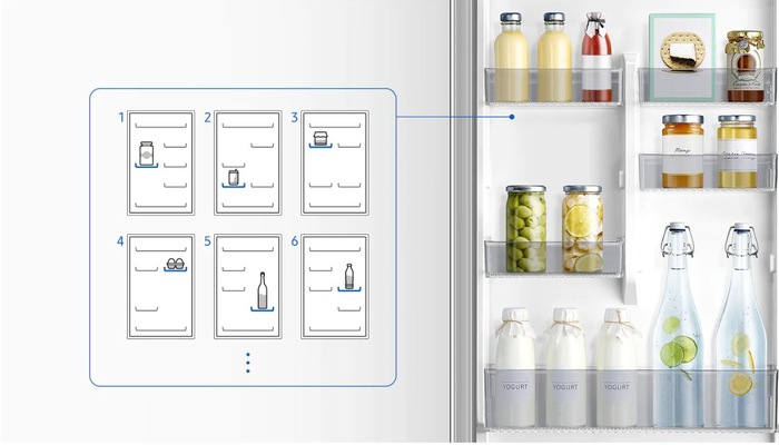 Usa frigiderului reversibila cu maner orizontal integrat este echipata cu 6 suporturi mari pentru o depozitare flexibila, facand loc pentru diverse tipuri de sticle, cutii si alte articole, astfel incat sa va utilizati la maximum spatiul de stocare.