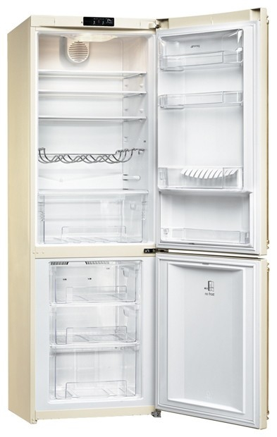 Smeg cu tehnologia de dezghetare automata frigider si No Frost fara gheata a congelatorului, este construit astfel incat apa rezultata in urma dezghetarii se aduna intr-un locas special în partea de jos, de unde se scurge in afara frigiderului, intr-o tavita aflata deasupra compresorului. De aici apa se evapora, ajutată fiind si de căldura degajata de compresor in timpul functionarii. Acest model are tehnologia de racire Total No Frost atat a frigiderului cat si a congelatorului. Aceasta tehnologie fiind una dintre cele mai bune sisteme de racire de pe piata, sistemul instalat in compartimentul congelatorului, previne acumularea de gheata, mentinand un consum scazut de energie, in timp ce in compartimentul frigiderului mentine un microclimat ideal pentru mancarea proaspata. In plus Smeg are in dotare si tehnologia de racire tangentiala Multi Air Flow, pe baza de curenti de aer multidirectionali pe mai multe canale, unde exista o grila prin care aerul rece pastrand temperatura si umiditatea constanta, intra prin mai multe orifici in compartimentul combinei. Aceasta tehnologie mentine calitatea si prospetimea alimentelor pentru o perioada indelungata.