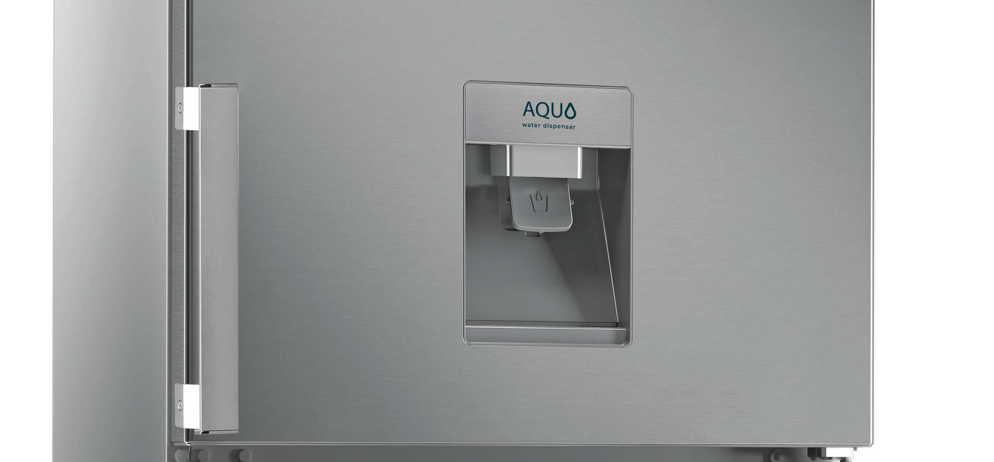 Usa frigiderului cu maner vertical si cu deschidere spre dreapta, este echipata cu 3 suporturi flexibile. Astfel cu aceasta tehnologie puteti personaliza aceste sertare pentru depozitarea sticlelor, a cutiilor si a altor ambalaje de diferite dimensiuni, pentru a profita la maxim de spatiu creat.Combina frigorifica Whirlpool WB70I931XAQUA, 439l, Clasa F, Total No Frost, 6th Sense, Active 0, Dozator de apa, H 195.5 cm, Inox anti-amprenta    Pentru un plus de confort usa frigiderului este echipata si cu un dispenser iluminat pentru apa potabila incorporata in usa ce ofera un spatiu suplimentar, eliberand inca un raft din zona de refrigerare. Pentru a distribui apa este nevoite sa apasati clapeta cu paharul. Aceasta clapeta este dotata si cu un sistem de blocare, care impiedica accesul neautorizat.     Rezervorul de apa cu capacitatea de 3 litri integrat in usa, este dotat si cu un filtru de apa. Filtrul de apa foloseste un cartus din carbon activ care reduce cantitatea de clor, sedimente, murdarie si rugina din apa potabila. Sistemul de filtrare dureaza maxim 2 luni in conditiile unui regim de utilizare continua de pana la 225 l. Zona de refrigerare are iluminare ECO LED coloana pe laterala in partea dreapta, ce ofera o lumina mai puternica, cu mai putina caldura degajata si consum energetic de 7 ori mai mic.