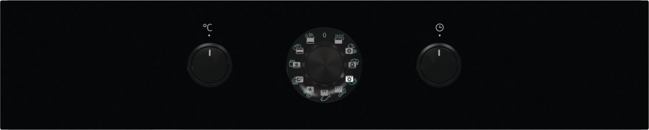 Panoul de comanda pozitionat frontal, cu trei butoane rotative retractabile impreuna cu programatorul mecanic, indeplinesc functiile de: setare temperatura, timer si selector de programe. In stanga panoului se afla butonul rotativ retractabil termostatat de selectie temperatura, de unde avem posibilitatea sa selectam nivelul de temperatura necesar de la 50°C la 275°C pentru prepararea fiecarui aliment. In partea centrala a panoului de control se afla butonul rotativ retractabil de unde avem posibilitatea de a selecta unul din cele 11 functii cu care este dotat cuptorul. Nivelele de temperatura selectate sunt: Cuptor cu incalzire lenta cu temperatura de lucru de la 50°C – 100°C; Cuptor cu incalzire moderat lenta cu temperatura de lucru de 100°C – 150°C; Cuptor cu moderat rapida cu temperatura de lucru de 150°C – 200°C; Cuptor cu incalzire rapida cu temperatura de lucru de 200°C – 250°C. Cuptor cu incalzire rapida/foarte fierbinte cu temperatura de lucru de 250°C – 275°C. Temperatura cuptorului este reglata de un termostat ce permite setarea cu precizie a temperaturii de preparare. Imediat dupa pornirea cuptorului, sistemul de radiatie termica functioneaza cu putere maxima pana cand este atinsă temperatura setata. Apoi, termostatul reduce automat puterea sistemului de radiatie termica la nivelul necesar pentru a mentine constant temperatura setata. Prin intermediul timer-ului mecanic din dreapta panoului de comanda de 120 de minute, putem seta pornirea si oprirea timpului de gatit. Mai mult gestionam eficient timpul si stim mereu cat dureaza pregatirea alimentelor preferate. Ceasul de alarma se va roti in sensul invers al acelor de ceasornic pentru a alege durata alarmei si la expirarea timpului programat de coacere ceasul mecanic va emite un semnal acustic de avertizare, fara a opri functionarea cuptorului. Avantajul acestui cuptor cu programator mecanic este faptul ca nu include componente electronice care se pot defecta rapid la fluctuatiile de tensiune electrica. Trebuie mentionat si faptul ca butoanele de la nivelul panoului ies în afară când trebuie să fie utilizate şi se retrag în interior după efectuarea comenzilor, conferind suprafeţei un aspect neted şi elegant.