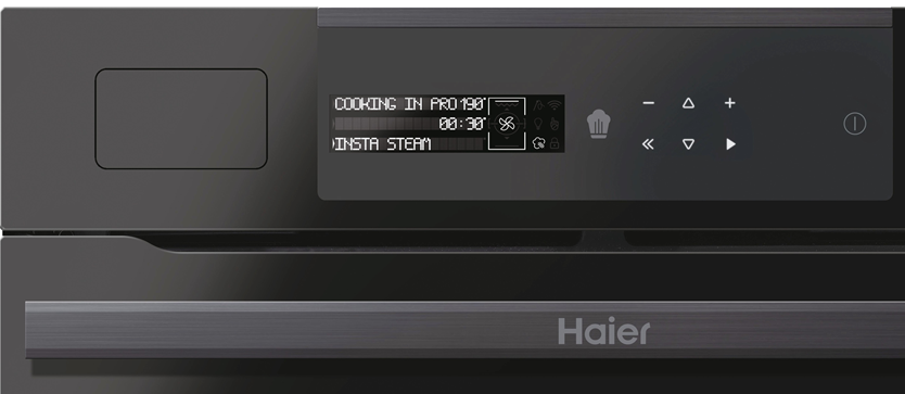 Usa cuptorului este alcatuita din trei straturii de sticla ce asigua o buna izolare termica, in plus un ventilator ascuns asigura o racire tangentiala a carcasei cuptorului si prin intermediul unor fante si a geamului de la usa cuptorului. Ventilatorul are rolul de a raci componentele electrice ale cuptorului cat si usa din sticla, pentru ca tu sa-l poti apoi curata fara sa te frigi. Odata ce-ai terminat de gatit ventilatorul va porni automat, racind interiorul cuptorului intr-un timp foarte scurt. Iar manerul cuptorului este facut dintr-o bara rezistenta din otel inoxidabil de culoare negru, contribuie la aspeectul deosebit al acestui cuptor de la Haier.