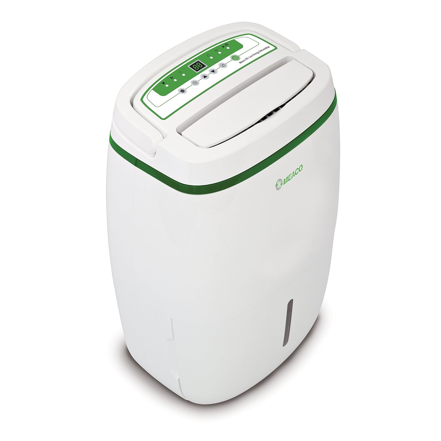Eficienta energetica oferita de acest sistem de climatizare este buna, acesta fiind incadrat in clasa A+, cu un consum maxim de 250 W/h. Consumul energetic numai cu ventilatorul cu functia separata de purificare este de maxim 25 W/h. Acest aparat avand clasa de izolare electrica IP20 evaluat (nu se utilizeaza intr-o baie). Aparatul detine un senzor cu higrostat reglabil si face posibil un control permanent al umiditati din aer. Depasirea valorii de umiditate setate duce la pornirea automata a aparatului. Imediat ce umiditatea dorită a fost atinsă, aparatul se deconectează automat. Pentru ca senzorul din dotare sa poata masura corect umiditatea din incapere, ventilatorul aparatului funcționeazaă permanent, pana ce higrostatul din dotare constată atingerea umidității setate, deconectand automat aparatul. Meaco este indicat sa fie folosit in spatiul unei incaperi unde temperatura este cuprinsa intre 5°C – 35°C, cu domeniul de functionare intr-un spatiu cu umiditate de 30% – 100 % u.r. Pe langa functia de dezumidificare, aparatul poate fi folosit si pentru purificarea aerului, asta daca ii asiguri un filtru de tip HEPA la interior, care vine separat de acesta. Oferta curenta totusi iti aduce in pachetul comandat si acest filtru, pentru a putea folosi aparatul la capacitate maxima si din punct de vedere functional.