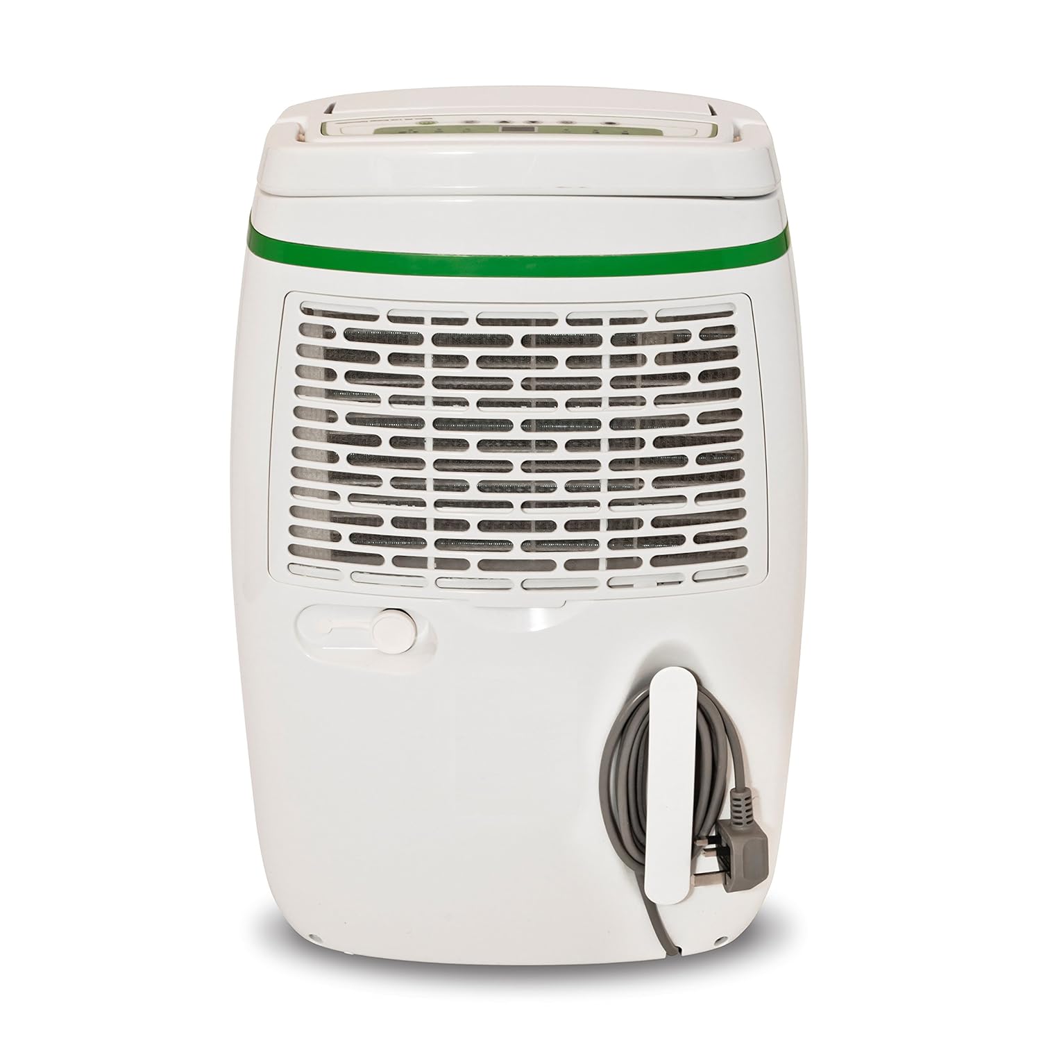 Panoul de comanda situat in zona superioara ofera utilizatorului accesul rapid la functile aparatului, totul cu ajutorul butoanelor de selectie dupa cum urmeaza: cele doua sageti pentru reglarea densitatii de umiditate din camera, butonul de pornit/oprit, functie timer, buton pentru ajustare vitezei de ventilare, functie dezghetare, buton pentru rotirea electronica a clapei si display-ul LED. Actiunile pe care utilizatorul le selecteaza din panoul de comanda, sunt semnalizate prin aprinderea concomitenta a diodelor luminiscente specifice fiecarei functii. Pentru a activa functia de siguranta copii, trebuie sa apesi de mai multe ori pe butonul sageata jos, functie care blocheaza activitatea tuturor functiilor de pe panoul de comanda. Pentru activare, este nevoie de simpla apasare a sagetii sus. La acest model instalatial functioneaza la capacitate maxima de dezumidificare pana cand rezervorul de condens se umple cu apa, sau in cazul cand functionam cu racord de golire la canalizare, pana la oprirea voita a aparatului. Clapa de evacuare aer are un sistem de deschidere electronic la un unghi de 90°.