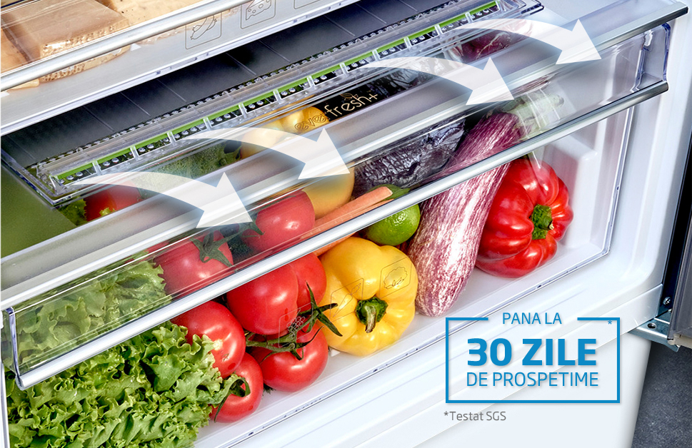Deasupra acestei zone se afla compartimentul cu capacitatea de 20 de litri si temperatura de 0°C cu functia Fresh Active ideal pentru depozitarea carnii, pestelui si fructelor de mare. Temperatura este cu cateva grade mai scazuta decat in restul frigiderului, extinzand considerabil prospetimea. Acest compartiment mai poate fi folosit si pentru decongelare produselor din congelator ce pot fi procesate in cel mai scurt timp.