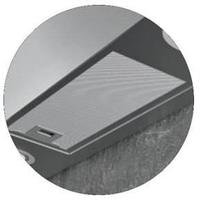 Master Kitchen MKHD V808-TouchWH are un sistem de absorbtie perimetrica a aerului de inalta precizie inteligent si silentios. Acest sistemul redirectioneaza curenti de aer de admisie ai aparatului din partea exterioara a capotei catre partea centrala. Aceasta solutie optimizeaza consumul de energie, reduce zgomotul si face ca aparatul sa fie mult mai eficient. Iar panoul decorativ tangential in afara de aspectul estetic are si rolul de a masca sistemul de filtrul metalic din dotarea hotei.