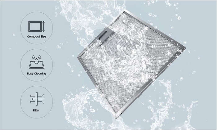 In ultimul timp se evidentiaza nevoia si plusul estetic pe care trebuie sa-l aduca bucataria in cadrul locuintei, valabil mai ales in bucatariile care comunica cu living-ul, open space, determinand o crestere a cererii electrocasnicelor pe culoarea neagra. Daca iti doresti o hota performanta care sa nu te dezamageasca de la prima utilizare sau sa cedeze in primul an de functionare e cazul sa mergi pe mana celor de la Samsung. Specialistii coreeni de la Samsung au implementat cele mai noi tehnologii astfel ca hota incorporabila decorativa Samsung NK24M5070BG/UR este alegerea perfecta totul la un pret foarte bun. Aparatul face parte din noua gama de electrocasnice incorporabile propusa de Samsung pentru piata europeana. Aparatul Samsung NK24M5070BG/UR despre care vorbim astazi este o hota electrica decorativa montata pe perete ce se incorporeaza, avand dimensiunile pentru montaj cu evacuare afara de (IxLxA) mm: 562/1092 x 600 x 450 si dimensiunile pentru montaj cu recirculare inauntru de (IxLxA) mm: 639/1092 x 600 x 450 cu o greutate neta de 14,8 Kg. Modelul Samsung NK24M5070BG/UR are in dotare elemente constructive telescopice, ce culiseaza pe verticala. La acest model marimea pe verticala a corpului poate fi extinsă la utilizare, fiind reglata la o distanta adecvata fata de zona de arzatoare. Distanta minima recomandata pentru montaj fata de o plita electrica este de 50 cm si fata de o plita cu functionare pe gaz metan este de 65 cm. Hota are un design modern, de culoare negru, iar materialul din care este construit este otel inox vopsit. Acest model iese de asemenea in evidenta si prin tehnologia avansata pe care se bazeaza, si care ii asigura performante inalte la evacuarea aerului viciat din bucatarie, cu cel mai mic consum posibil. Panoul de comanda cu afisaj tactil complet pozitionat frontal, cu control electronic, este actionat de sase butoane ce indeplinesc functiile de: setare treapta de aspiratie, ventilatie intensiva, comutator iluminare si setare pornire/oprire. Aceasta interfata cu ecran ascuns LED de culoare bleu pastel, dotat si cu butoane moderne, oferind acces direct la functionarea hotei in bune conditii. Cand porniti hota cu ajutorul butonului On/Off ventilatorul porneste direct in treapta 1. Pentru a modifica viteza de ventilare este nevoie sa atingeti butoanele din treapta 2 sau 3. Daca atingeti simbolul de treapta de aspiratie cu viteza intensiva, hota aspira la capacitate maxima timp de 5 minute dupa care trece automat in treapta 3 de aspiratie. Daca doriti sa scurtati timpul de functionare la treapta intensiva inainte de scurgerea timpului presetat, atingeti acelasi buton. Cand tasta 2 semnalizeaza cu lumina intermitenta, hota va atentioneaza ca este nevoie sa curatat filtrul de grasime. Iar daca apasati mai lung tasta 1, dezactivati aceasta semnalizare. Cand tasta 3 semnalizeaza cu lumina intermitenta, hota va atentioneaza ca este nevoie sa schimbati filtrul din carbune activ. Iar daca apasati mai lung tasta 1, la fel dezactivati aceasta semnalizare. Sistemul de iluminare se poate activa independent de functia de ventilare. Cu tasta de oprire automata temporizata, putem seta oprirea automata a hotei in functie de regimul de functionare. In acest sens daca hota functioneaza la viteza 1 de extractie prin accesarea programatorului, aparatul se va opri automat dupa 20 de minute. Daca hota functioneaza la viteza 2 de extractie prin accesarea programatorului, aparatul se va opri automat dupa 15 minute. Si in fine daca hota functioneaza la viteza 3 de extractie prin accesarea programatorului, aparatul se va opri automat dupa 10 minute. Constructiv hota are un aspect robust, cu iluminare exterioara cu LED 2 x 2,5 W cu clasa de eficienta iluminare A, fiind dotat cu 2 filtre de grasime multistrat cu eficienta de retinere de clasa C. Aceste filtre reţin particulele de grăsime din aburi, care altfel s-ar condensa pe pereţii interiori ai hotei şi ai tubulaturii, după care ar începe să curgă ca o mâzgă lipicioasă. Aceste filtre metalice se spală odată pe lună sau mai des dacă este necesar. Spălarea acestor filtre este simplă, necesită doar apă fierbinte şi detergent sau săpun lichid, ori pot fi introduse în maşina de spălat vase. În ambele cazuri vom fi atenţi să nu le îndoim.