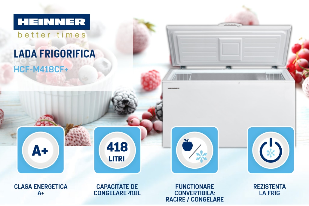Daca detii un spatiu comercial, sau ai o familie numeroasa o lada frigorifica de la Heinner model HCF-M418CF+ este bine venita daca vrei sa tii alimente si bauturi racoritoare la rece si sa le protejezi, pentru ca sa nu se altereze. Bineinteles, o astfel de lada poate fi utilizata si in scop personal pentru acasa, ce este un dispozitiv cu o racire rapida perfecta si adecvata pentru orice intrebuintare.