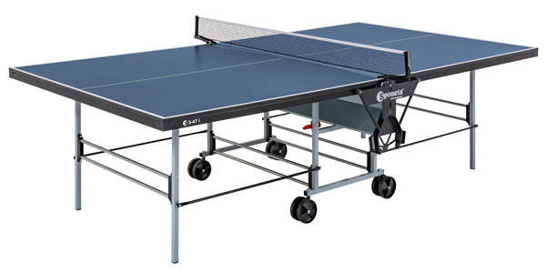 Atunci cand pasiunea pentru tenisul de masa este mare e cazul sa iti achizitionezi o masa de tenis profesionala pe care o poti folosi in partidele cu prietenii tai ori de cate ori doresti. In acest caz iti recomand masa de tenis Sponeta S3-47i pentru interior ca fiind o alegere interesanta atat ca pret cat si din punct de vedere al modului in care aceasta se prezinta: este destul de mare, construita din materiale de calitate si vine si cu plasa de joc in dotare. Sponeta nu este rezistenta la radiatiile solare la caldura si la umiditate (spatiu cu umiditatea relativa mai mare de 60%) fiind potrivita numai pentru incaperile uscate. Suprafata de joc are urmatoarele dimensiuni aprobate de I.T.T.F: (L, l, H) mm 2740 x 1525 x 760, iar dupa fiecare antrenament aceasta poate fi pliata si depozitata cu usurinta undeva ferit pana la urmatoare incursiune in lumea tenisului. Acest model este perfect pentru avansati. Fileul ‘Perfect-EN stationary-compact’ de culoare neagra poate ramane montat pe masa chiar si cand aceasta se afla in pozitia semi-pliata sau pliata pentru depozitare, marind astfel si stabilitatea mesei.