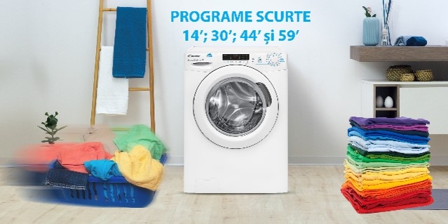 Masina de spalat rufe cu uscator Candy CSWS 4962DWE/1-S ofera si 15 + 1 programe de baza si 40 de programe Smart Touch. Programul de spalare poate fi setat de acest model automat, deoarece detecteaza cantitatea de rufe. Programele speciale ale masini Candy sunt: Programul Expres la 30 si la 40ºC in doar 14, 30, 44, 59 de minute. Destinat articolelor usor murdare si nepatate, cum ar fi prosoape, tricouri, sosete. Cantitatea de rufe in cele trei programe rapide este de: 1,5; 2,5, 3,5 si 4 Kg.