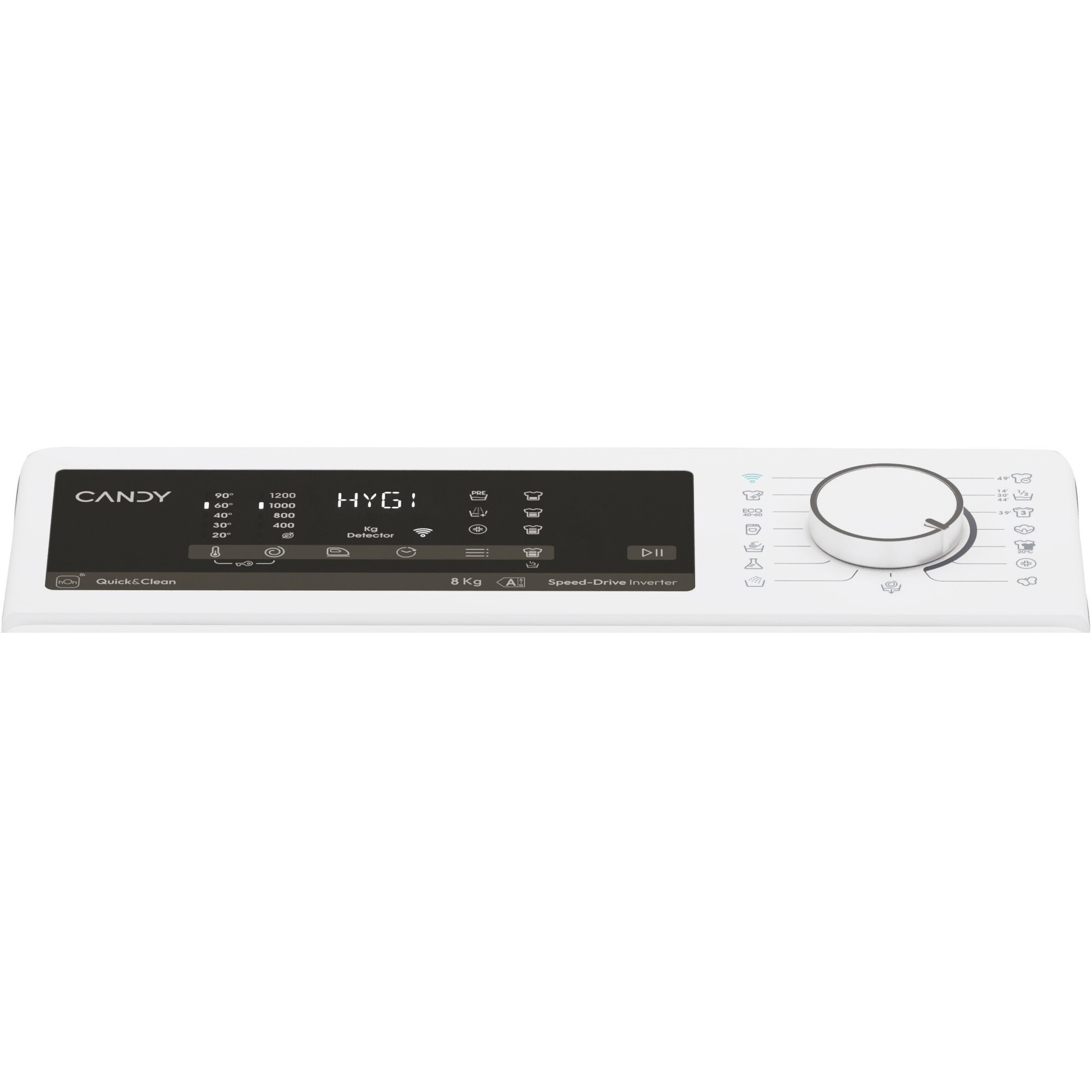Panoul de comanda mecanic si digital situat in partea superioara este prevazut cu un Smart Ring inel inteligent care se roteste foarte usor si avand un ecran LCD la mijlocul discului cu control electronic, avand functii de spalare care se vizualzeaza pe ecranul albastru. Discul rotativ cu care puteti accesa unul din cele 15 programe de baza + 40 de programe smart: de accesare a functiei Mix Power System de 59 min si a functiei Usor de calcat este usor de accesat, intuitiv si cuprinde majoritatea optiunilor disponibile pe o masina de spalat de obicei mult mai scumpa. Pe ecranul LCD cu text mare si cu pictograme usor de inteles, fac programarea foarte simpla a procesului de spalare cu statisticile energetice, datorita afisajului integrat. De asemenea asistentul vocal vă va ajuta la alegerea si configurarea unui program. Fiecare program de spalare are o temperatura si o viteza de centrifugare prestabilita. Daca doriti sa schimbati aceasta temperatura sau viteza de centrifugare, apasati butonul senzitiv de pe display aferent setari temperaturi, sau a vitezei de centrifugare. Functia cu Nivelul de murdarie va permite sa selectati unul dintre cele 3 nivele de spalare, prin modificarea duratei de spalare. Astfel computerul de la acest model iti propune timpi diferiti de spalare, asigurand la finalul ciclului de spalare, rufe perfect curate si in cel mai scurt timp posibil. Cu butonul de temperatura avem posibilitatea de a seta temperatura de spalare pe 5 trepte de temperatura de la minim 20 la maxim 90°C. Cu butonul de spalare Rapida putem sa setam timpul de spalare de: ECO (14; 30; 44) min. Cu butonul de Calcare usoara activam functia ce permite reducerea sifonarii rufelor, prin eliminarea centrifugari intermediare sau prin reducerea intensitatii ultimei faze de centrifugare. Dupa ce ati selectat optiunea de Calare usoara puteti utiliza si butonul de Nivel de Abur pentru a utiliza trei trepte in intensitate al emisiei de abur in functie de tipul de tesatura. Aceasta faza cu abur reduce sifonarea tesaturilor si usureaza calcarea lor. Cu butonul de functii suplimentare prin apasari succesive selectati urmatoarele functii: Optiunea de Pre-spalare o putem folosi numai pentru rufe care sunt foarte murdare. Optiunea de Clatire suplimentara de la finalul unui program o folosim pentru persoanele cu pielea mai delicata sau sunt sensibile la resturile de detergent. Optiunea Hygiene+ de igienizare a hainelor o puteti folosi numai atunci cand ati selectat temperatura apei de spalare la 60°C. Optiunea de ciclu de spalare Nocturn reduce viteza de centrifugare intermediara la 400 rot/min si mentine rufele in apa finala de clatire pentru a se evita sifonarea lor. Tehnologia Fuzzy Logic detecteaza automat dimensiunea fiecarei incarcaturi in primele 4 minute cu ajutorul senzorului de greutate Kilo Detector, iar procesorul dupa ce primeste informatia privind greutatea rufelor de la senzor regleaza: Cantitatea de apa; Stabileste durata programului; Controleaza ciclurile de clatire in functie de testura articolelor de imbracaminte; Regleaza ritmul de rotatie al cuvei in functie de testura; Recunoaste prezenta spumei si daca este nevoie adauga un ciclu de clatire suplimentar, si regleaza viteza de centrifugare in functie de greutatea rufelor. Iar cu ajutorul functiei Start Delay, rufele vor fi spalate chiar atunci cand doriti. Astfel functia va permite sa programati inceputul ciclului de spalare cu o intarziere de maxima de 24 de ore. Daca rotim butonul in pozitia Wi-Fi activam sau dezactivam conectarea la internet of Things. Acum pentru prima data veti putea avea un dialog inteligent cu masina de spalat prin telefonul smartphone. Iar cu ajutorul conectivitatii Wi-Fi/hOn App ce utilizeaza aplicatia hOn iti vei putea comanda masina de spalat rufe si de la distanta. Descarcarea aplicatiei hOn pe dispozitivul mobil se face prin incadrarea codului QR ce se gaseste pe instructiunile de functionare, ce insoteste aceasta masina de spalat rufe. Aplicatia este disponibila pentru dispozitive mobile cu Android cat si pentru cele cu IOS. Acum pentru prima data veti putea avea un dialog inteligent cu masina de spalat prin telefonul smartphone. In plus prin activarea unui software de activare a vocii, functia va permite sa controlati masina cu vocea dvs. prin intermediul telefonului smartphone sau a unei tablete. Doar prin apelarea verbala a masina cu numele de Bianca, procesorul performant va indeplini orice comanda atunci cand doriti sa incepeti sau sa terminati un program de spalare, sau sa solicitati recomandari specifice fata de unui ciclu de spalare sau chiar sa solicitați cele mai recente recomandari, pentru indepartarea petelor persistente. Procesorul Bianca tine cont si de nevoile dvs. si corecteaza orice greseli de programare pe care le faceti si te invata in fiecare zi despre cerintele dvs. de spalare. Pentru mai multe detalii cu privire la functiile Wi-Fi, este nevoie sa navigati prin modul Demo al aplicatiei. Iar cu functia Snap and Wash poti sa faci o poza cu articolul de imbracaminte care trebuie sa fie spalat si aplicatia inteligenta te va indruma in scurt timp la programul de spalare indicat pentru acel articol de imbracaminte. La acest model avem posibilitatea de a opri si apoi de a porni in timpul derulari unui program de spalare. Aceasta functie poate fi folosita si pentru a scoate sau a adauga rufe in masina. Pentru a realiza acest lucru comutam masina in modul Pauza in timpul unui program de spalare, apasand butonul “Pornire/Pauza” iar pe display un indicator ne va indica etapa in care a ajuns ciclul de spalare. Oprirea masinii pe durata unui ciclu de spalare va anula in schimb programul de spalare aflat in derulare. Oprind masina putem face si eventuale modificari ale functiilor auxiliare, ale temperaturii si a vitezei de centrifugare, daca este necesar. Pentru a reporni programul de spalare apasam in continuare pe acelasi buton “Pornire/Pauza”. Modificarile in programul de spalare vor fi facut