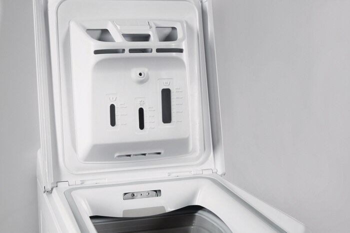 Cuva masini este facuta dintr-un material termorezistent poliplex de culoare alb iar tamburul este din otel inox cu o capacitate de 44 de litri. Spre deosebire de masinile de spalat cu incarcare frontala acest model permite introducerea hainelor de sus in jos detinand tehnologia (Soft opening) tambur si usa cu deschidere în sus, iar deschiderea cu latura de 21 de centimetri nu este una brusca ci una de tip Soft Opening Door. Acest sistem tehnic este format dintr-un sistem de arcuri, unde clapele metalice care inchid tamburul se deschid lin.