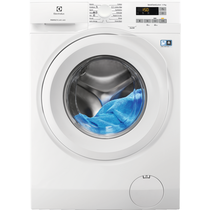 Masina de spalat rufe Electrolux EW6F527W, PerfectCare600 este alegerea inspirata daca iti doresti o masina de spalat performanta dotata cu tehnologii de ultima generatie si economica din punct de vedere al consumului. Aparatul prezinta o constructie compacta si solida avand urmatoarele dimensiuni slim: 85 cm inaltime, 60 cm lungime si 54,7 cm latime si o greutate de 64,5 Kg, astfel ca aceasta nu va ocupa prea mult spatiu acolo unde va fi montata. Electrolux este dotata cu un motor universal ce asigura o functionare ultra-silentioasa de 58 dB la spalare si 79 dB la centrifugare, ridicandu-se la cele mai ridicate standarde de eficienta energetica. Acest motor fiind proiectat tehnologic pentru a beneficia de o durabilitate maxima in utilizare. In plus acest motor este rezistent la fluctuatiile de tensiune intre 95 si 240 de volti iar masina este dotata cu o functie de oprire/re-pornire automata pentru protectie la tensiuni in afara acestei game. Avem de-a face cu o masina de spalat economica si din punct de vedere al consumului energetic fiind incadrata in clasa de eficienta energetica A+++ la spalare. Calitatea de spalare si stoarcerea este foarte buna la acest model. Rufele se spala bine si datorita turatiei de 1200 rot/min cu eficienta de centrifugare de clasa B, cu umiditatea reziduala de 53%.