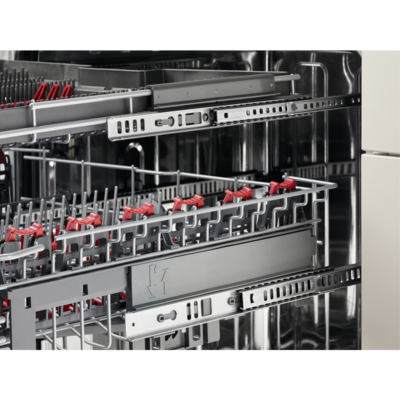 Aceasta masina ce face parte din generatia Pro Clean™ va ofera suport suplimentar pentru paharele delicate, datorita sistemelor de curatare a paharelor Soft Grip si Soft Spikes. Suporturile moi din cauciuc Soft Grip au fost concepute special pentru a oferi o protectie suplimentara paharelor delicate de vin prin fixarea lor atenta, dar ferma, pe toata durata ciclului de spalare. Datorită motorului invertor cu presiune variabilă Eco Silence Drive şi datorită Sensor Logic, ce detecteaza nivelul de murdarie si regleaza consumul de apa, performantele de spalare sunt automatizate. Senzorul de incarcare Sensor Logic detectează nivelul de murdarie si regleaza consumul de apa, economisind apa si energie. Pentru că aparatul urmează a fi folosit cel mai probabil zilnic, producătorul l-a dotat cu tehnologii și programe nu doar eficiente, ci și economice. Vasele si tacamurile vor fi mereu curate si stralucitoare datorita tehnologiei inovatoare de spalare cu brat stropitor cu satelit, avand 5 nivele de presiune. AEG avand un motorul Pro Smart Inverter fara perii asigura o functionare ultra-silentioasa de 39 dB la spalare ridicandu-se la cele mai ridicate standarde de eficienta energetica. Acest tip de motor brushless, a caror constructie a permis eliminarea periilor de carbon, introduce un set de avantaje sesizabile de la prima utilizare: nivel de zgomot redus, absenta vibratiilor, control imbunatatit al turatiei, eliminarea emisiilor electromagnetice. Toate aceste avantaje sunt dublate de durabilitatea si robustetea ansamblului din care au fost eliminate elementele supuse uzurii, periile de carbon. Acest motor fiind proiectat tehnologic pentru a beneficia de durabilitate maxima in utilizare. Cele 3 brate stropitoare cu 5 variatii de presiune ale apei asigura o acoperire maxima a întregii încărcături. Sistem Pro Water are un optional si un brat stropitor din plafon. Iar bratul stropitor de jos are o mișcare de rotatie dubla, cu schimbarea continuu a unghiului de pulverizare, pentru a ajunge în fiecare colt al masinii de spalat vase. Acest brat stropitor de jos tip satelit (este mai bun decat cel de tip elice).