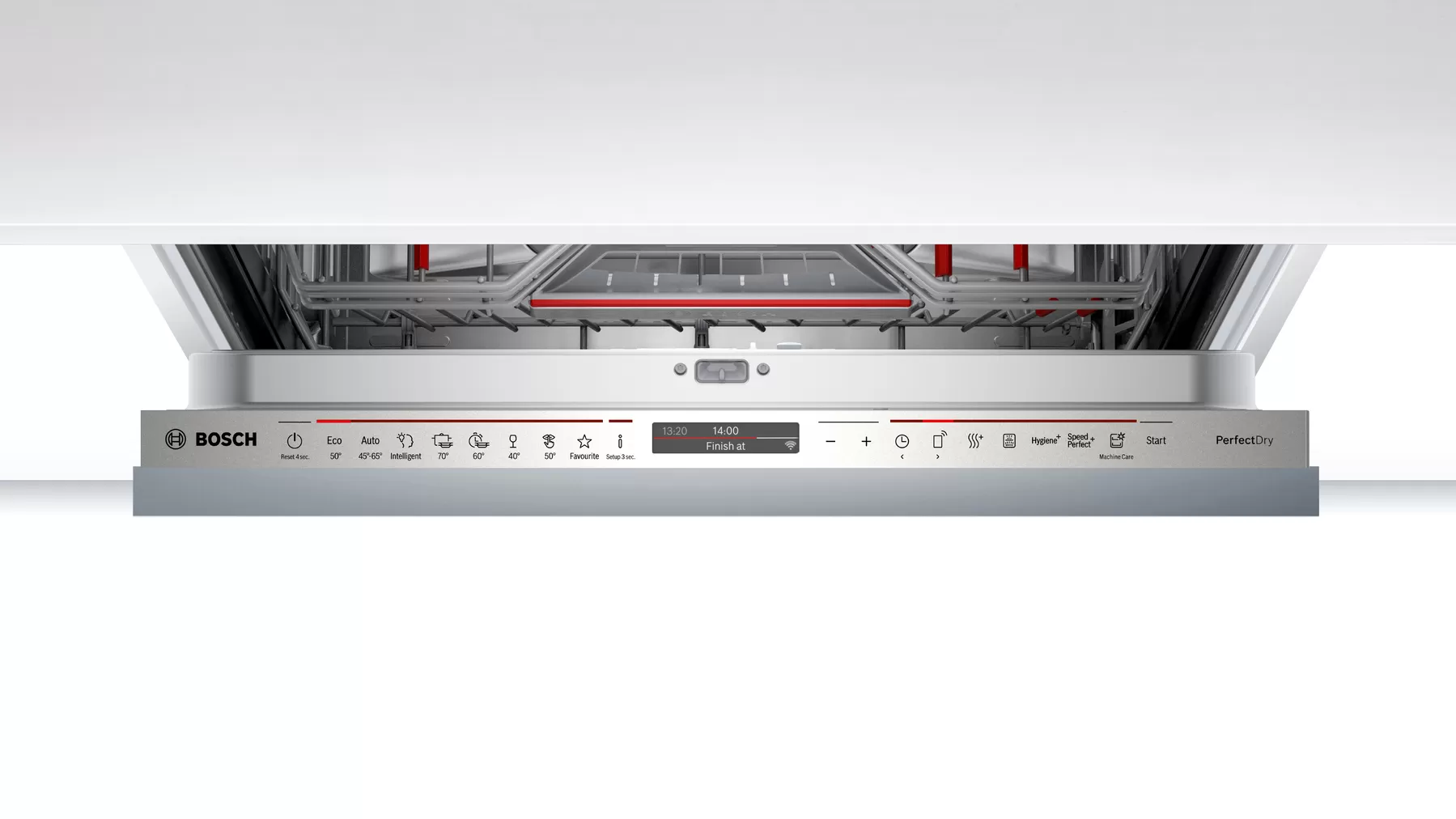 Pentru spalarea efectiva masina de spalat vase incorporabila Bosch SMV8YCX03E are la dispozitie 8 programe de spalare, cu 5 nivele de temperaturi de spalare: Vei gasi astfel un program Intensiv la 70°C, recomandat pentru vasele cu grad de murdarie ridicat, rezistente la temperaturi mari, precum: vase, oale, cratite. Programul este asistat de Load Sensor, care detecteaza nivelul de incarcare si face mici reglari la consum si durata. Astfel programul va tine intre 2 ore si 25 de minute si 2 ore si 30 de minute si va consuma intre 10,5 si 13,5 litri de apa, iar energie de la 1,15 la 1,25 kWh. Un program Automat unde senzorul de turbiditate detecteaza nivelul de murdarie si alaturi de senzorul de incarcare vor regla durata, temperatura de spalare si consumul de apa/curent. La acest program temperatura de spalare va fi intre 45-65°C, avand un consum de 7-15.5 litri de apa in functie de nivelul de incarcare si energie de 0,68-1,3 kWh. Durata acestui program va fi intre, intre 1 ora si 40 de minute si 2 ore si 40 de minute. Un program Bio/Eco la 50°C pentru spălare la un nivel minim de resurse timp de 3 ore si 55 de minute. Acest program de spalare sa luat ca referinta pentru eticheta energetica. Programul de spalare Glass Care ce este dedicat pentru articole sensibile, precum pahare. La acest program se spala la doar 40°C si la o presiune scazuta. Programul dureaza de la 1 ora si 40 de minute pana la 1 ora si 45 de minute, in care va consuma de la 11,1 la 13,7 litri de apa si energie 0,75-0,80 kWh. Program de spalare Zilnic de 1 ora si 29 de minute la 60°C si cu o faza de clatire la 50°C, are un consum de 11,5 litri de apa si energie de 1,050 kWh. Programul de spalare Silentios cu activare din aplicatia Home Connect si cu durata de 4 ore, se deruleaza la un nivel silentios de zgomot de 41 dB. La acest program de spalare cu temperatura apei la 50°C si ciclu de clatire la 35°C, are un consum de 10,5 litri de apa si de energie de 0,8 kWh. Acest program de spalare poate fi folosit si in timpul nopti fara sa deranjeze vecini. Cu tehnologia din dotare Machine Care ce este un program special de auto-curatare a cuvei, va asigura un maxim de igiena masini. Aceasta tehnologie prelungeste viata masinii de spalat. Acest program va consuma resurse energetice de 15 litri de apa si energie de 1,35 kWh, timp de 2 ore si 10 minute de functionare. Programul de spalare Inteligent adapteaza ciclul de spalare si de uscare pe baza feedback-ului primit de la utilizator. Iar dupa finalizarea acestui program de spalare, aveti si posibilitatea de a evalua rezultatele de curatare, de uscare, sau durata programului prin intermediul aplicatiei Home Connect. Pentru un plus de confort acest programul ofera si consumurile de resurse energetice. Programul va dura intre 2 ore si 25 de minute si 2 ore si 30 de minute si va consuma intre 11,5 si 12 litri de apa, iar energie de la 0,750 la 0,800 kWh. Mai mult prin intermediul aplicatiei Home Connect puteţi descarca si programe suplimentare de spalare, pe care le puteti salva prin accesarea butonului –My Favorite. Extra optiunile acestui model sunt: Efficient Dry; Incarcare la jumatate; Speed Perfect+; Hygiene+; Home Connect; Intensiv Zone. Cand activam optiunea Efficient Dry usa masini de spalat vase se deschide automat in timpul fazei de uscare. Acest lucru asigura si un rezultat de uscare deosebit de economic. Cand ciclul de uscarea nu ne multumeste, atunci cu optiunea Extra Dry masina va folosi apa la o temperatura si mai inalta in ultimul ciclu de clatire. In plus acest model dotat si cu tehnologia de uscare Perfect Dry Zeolith are rezultate perfecte de uscare cu ajutorul fluxului de aer 3D, chiar si in cazul vaselor din plastic. Procesul de uscare utilizeaza foarte putina energie, iar consumul de electricitate este redus in mod considerabil la cel mai mic consum de energie. Secretul pentru aceasta economie de energie este mineralul natural, zeolitul care este de natura vulcanica si care extrage umiditatea din cuva. Acest mineral se regenereaza dupa fiecare ciclu de spalare, datorita energiei termice recuperate ce incalzeste apa de spalare, iar energia termica eliberata este disipata prin suflare cu aer uscat in cuva masini. Acest mineral este rezista pe parcursul intregii durate de functionare a masinii de spalat vase si nu trebuie sa fie inlocuit niciodata. Astfel prin acest procedeu de uscare cu Zeolith se economiseste foarte multa energie. Masina va sesiza daca avem detergenti de tip tableta, sau folosim detergent sub forma de praf, alaturi de agentul de clatire, ajustand automat programul pentru a obtine rezultate bune, in ambele cazuri. Tehnologia Speed Perfect+ din dotarea masini Bosch, este o functie speciala dezvoltata pentru situatii in care timpul conteaza. Folosind optional aceasta tehnologie la majoritatea programelor de spalare aveti posibilitatea de a reduce timpul de spalare cu pana la 65% fara a compromitele rezultatele bune de spalare. Optiunea Intensiv Zone ce poate fi adaugata la mai multe programe de spalare, asigura o presiune de pulverizare mai mare si o temperatura mai ridicata in cosul inferior. In acest fel oalele si tigaile foarte murdare sunt curatate mai bine in timp ce vasele delicate pot fi asezate in cosul superior. Optiunea Hygiene mareste temperatura apei de spalare si timpul de expunere pentru a asigura un nivel ridicat de igiena si sterilizare. La aceasta optiune programul de spalare are o durata mai lunga si un consum energetic marit. Cand accesam functia Favourite puteti sa salvati prin intermediul procesorului masini de spalat sau aplicatiei Home Connect o combinatie dintr-un program de spalare si o functie suplimentara. Iar cand apelati la aplicatia Home Conect puteti descarca si programe suplimentare de spalare pe care le puteti salva pentru a le folosi mai tarziu. Optiunea Machine Care este un program special de auto-curatare a cuvei, ce va asigura un maxim de igiena al masin