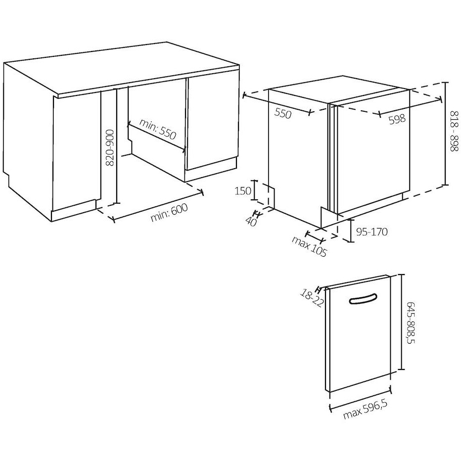 Masina de spalat vase incorporabila Candy Rapido CS 6B0S3PSA este cea mai rapida si mai spatioasa masina de spalat vase de pe piata, avand urmatoarele dimensiunile incorporabile de: (IxLxA) mm 818/898 x 598 x 550 si o greutate neta de 35,3 Kg, se poate integra in bucatarie fara sa-ti ocupe prea mult spatiu. Golul de montaj in blatul de la bucatarie trebuie sa aiba dimensiunile de (H, L, A)mm 820/900 x 600 x 550 iar blatul trebuie sa aiba o grosime de minim 20 mm.