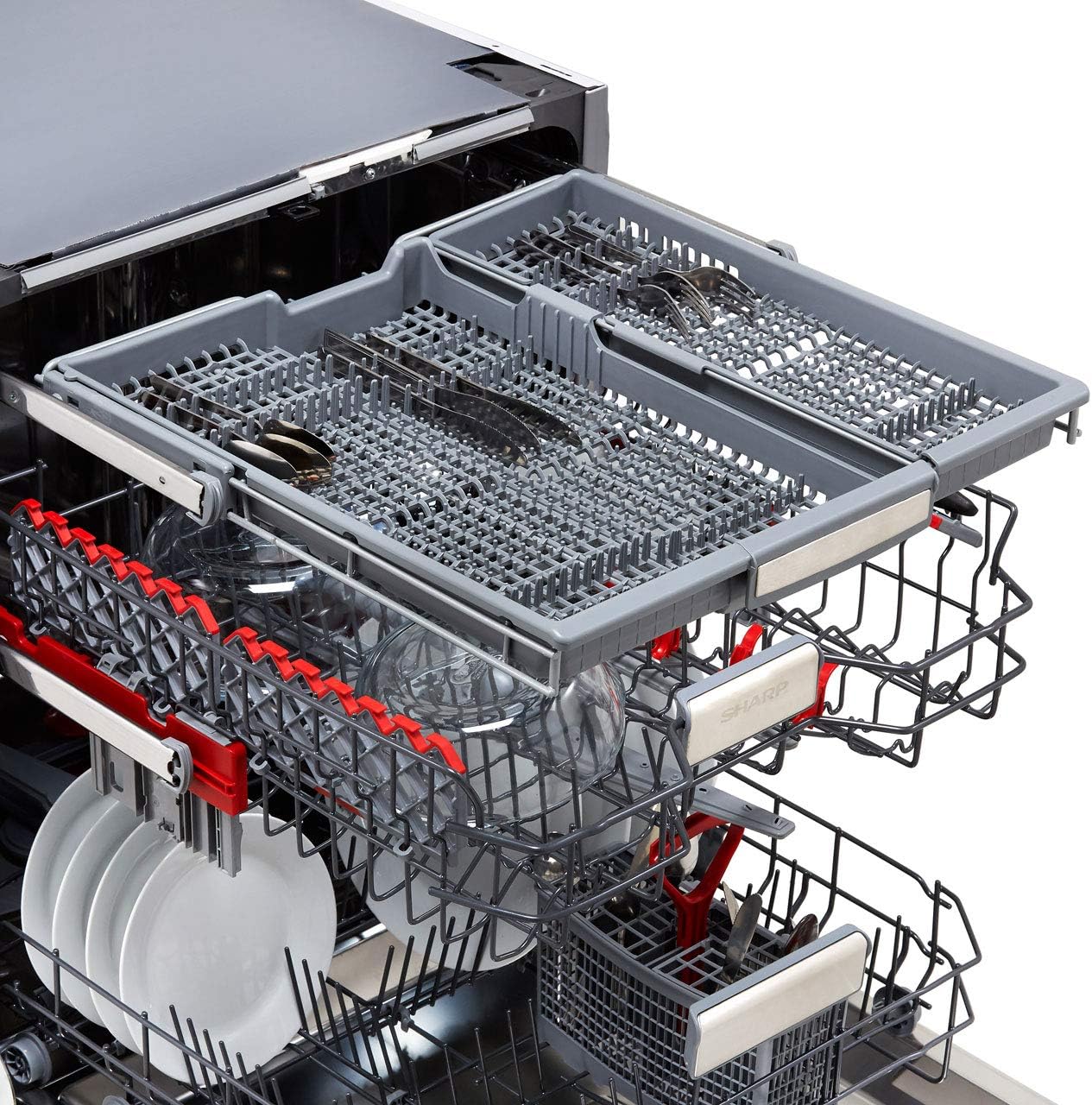 Pentru spălarea efectivă ai la dispoziție 8 programe de spălare cu 5 nivele de temperaturi de spalare: Un program Bio/Eco 50°C cu resurse de energie reduse si durata de 195 de minute. Cu functia Quick Wash puteti accesa un ciclu de spalare reducand consumul de energie si de apa datorita activarii functiei de spalare cu presiune ridicata. Masina economiseste apa si energie cu o distributie eficienta a apei, avand o tehnologie de filtrare optimizata, o incalzire mai rapida si o putere sporita, care mareste frecventa de circulatie a apei. In acest sens masina are un program Quick Wash 14 scurt de 14 de minute, care spala 4 seturi la temperatura de 60°C si nu are ciclu de uscare. Acest program foloseste in total 10,9 litri de apa si 0,88 kWh. De asemenea masina are si un al doi-lea program Quick Wash 30, ceva mai lung cu durata de 30 de minute care spala la temperatura de 40°C si are ciclu de uscare. Functia de spalare Dual Pro Wash la 60°C din datarea masini, poate curata chiar si cele mai murdare tigai, ce sunt plasate in cosul de jos, in timp ce in cosul de sus masina va avea grija de paharele delicate. Acest lucru se intampla datorita pompei cu presiune variabila, ce ajuta si la diminuarea zgomotului. Acesta program ruleaza timp de 112 de minute si va folosi 14 l de apa. Un program de spalare Expres de 50 de minute, cu nivel normal de murdarie, unde putem obtine rezultate bune, caci in ciclul de spalare se va utiliza apa la 65°C, intr-o cantitate de 10,7 litri si de energie de 1,31 kWh. In acest sens aceast model este prima si singura masina de spalat vase care realizeaza performanta de spalare de clasa A in conformitate cu EN50242 pentru vasele cu murdarie normala in doar 50 de minute. In acest sens aceasta masina are certificat emis de institutii internationale de testare ca VDE si LGA. Programul Hygiene la 60°C, este un program de dezinfectare la temperaturi ridicate pentru vase foarte murdare. Acesta program ruleaza timp de 154 de minute si va folosi 16,5 l de apa. Aceasta functie suplimentara este ideala de ex. pentru a spala blatul sau vesela folosita pentru copii mici. Un program de spalare Delicat la 30-50°C, ce este un ciclu de spalat dedicat pentru vesela delicata, cu spalare de 77-91 de minute, consumand 13,4 litri de apa si 0,88 kWh. Un program Auto Intensiv la 60-70°C folosit pentru vase si oale foarte murdare, cu detectarea gradului de murdarie. Programul poate dura intre 124-179 de minute si consuma apa in cantitate de 12,3-24,6 litri, cu un consum ridicat de energie de 1,3-1,95 kWh. Un program Auto Delicat de la 30 la 50°C, ce este un ciclu de spalat dedicat pentru vesela delicata, cu spalare de la 64 la 92 de minute, consumand 10,6-17,7 litri de apa si 0,80-0,99 kWh. la aceste trei programe auto etapele de spalare sunt determinate automat in functie de nivelul de murdarie. Masina de spalat vase Sharp detine optiunea Eco Wash, ce duce la economie de timp, energie si bani, iar rezultatele la spalare şi uscare se mentin optime. Aceasta functie tehnic iti permite utilizarea individuala a cosului de sus sau a celui de jos ca optiuni de incarcare, reducand consumul de curent si apa. Astfel acest sistem genereaza economii de timp de pana la 66%.
