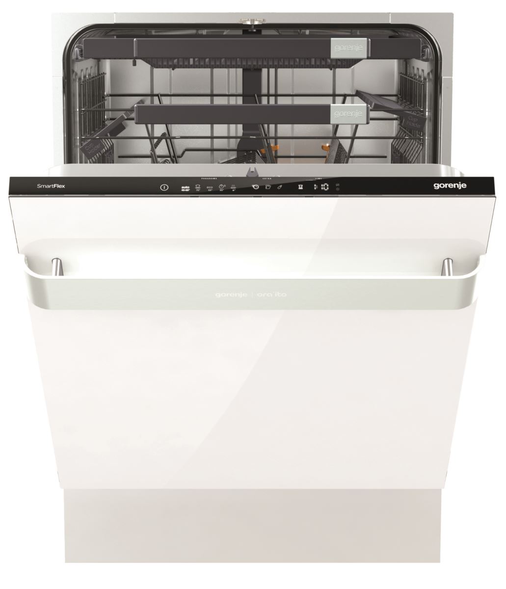 Masina de spalat vase semi-incorporabila Gorenje Ora Ito GV60ORAW este alegerea perfecta daca iti doresti o masina performanta cu control electronic dotat cu functii si tehnologii de ultima generatie. Usa cu panel din sticla alba cu maner ergonomic din inox are un design spectaculos, iar panoul de control electronic fiind plasat sus pe usa. Acest model ce face parte din colectia Ora Ito Black – eleganta si sofisticata s-a creat datorita colaborarii dintre Gorenje si faimosul design-er francez Ora-Ïto. Panoul cu o interfata foarte simpla, este prevazut cu un numar redus de butoane senzitive si semnalizari cu LED ce iti indica timpul ramas pana la finalizarea programului, precum si etapa spalarii la jumatate din capacitatea maxima a masini. Aparatul are in dotare si functia Timer cu pornire intarziata 24 h cu afisare timp ramas.