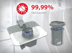Pentru spalarea efectiva ai la dispozitie 7 programe de spalare cu 6 nivele de temperaturi de spalare: 45; 50; 55; 60; 65°C. Astfel vei gasi astfel un program Automat unde senzorul de turbiditate detecteaza nivelul de murdarie si alaturi de senzorul de incarcare vor regla durata, temperatura de spalare si consumul de apa/curent. La acest program temperatura de prespalare este de 45°C, spalare va fi intre 45-65°C, iar ciclul de clatire se va face la 65°C, avand un consum de 11 si 15 litri de apa si de 0,9-1,3 kWh. Si durata acestui program va fi de maxim 150 de minute. Un program Bio/eco la 45°C pentru spălare la un nivel minim de resurse timp de 220 minute. Un program Intensiv la 70°C, recomandat pentru vasele cu grad de murdarie ridicat, rezistente la temperaturi mari, precum vase, oale, cratite. Programul este asistat de Load Sensor, care detecteaza nivelul de incarcare si face mici reglari la consum si durata. Astfel programul va tine 175 de minute si va consuma 17,5 litri de apa si 1,6 kWh. Program Normal de 90 de minute la 65°C, care este recomandat pentru incarcaturi cu nivel de murdarie normala si care au nevoie de o spalare rapida. Astfel programul va consuma 13,5 litri de apa si 1,35 kWh. Programul Glass este dedicat vaselor delicate, cum ar fi paharele, ce sunt spalate la temperaturi de 60°C. Programul are o durata de 130 de minute si un consum de 13 litri de apa, deci si consumul energetic de 0,9 kWh. Programul de Igienizare este un program cu spalare si clatire finala la 65°C, pentru o igienizare eficienta, folosit mai ales de cei care au copii, sau au persoana cu alergii. Programul ce se deruleaza timp de 100 de minute va consuma 10 litri de apa si 1,3 kWh. Programul Scurt este un program cu o durata de 30 de minute, cu spalare la 45°C si doua cicluri de clatire la 50 si 55°C, fara ciclu de uscare. Consumul energetic este mic, de 0,75 kW/h si cel de apa de 11 litri. Programul de Prespalare, este ideal pentru a fi utilizat inainte de inceperea ciclului de spalare propriu-zis. Acest program are consumuri energetice mici. Acest model poate fi incarcat si cu vesela cu grad mixt de murdarie. Vasele cu nivel mare de murdarie vor fi asezate in cosul inferior in timp ce vasele cu nivel de murdarie mediu vor fi asezate in cosul superior. Masina de spalat vase Toshiba detine optiunea Half Load, unde timpul de spalare este redus cu mai mult de jumatate, iar rezultatele la spalare şi uscare se mentin optime. Aceasta functie tehnic iti permite utilizarea individuala a cosului de sus sau a celui de jos ca optiuni de incarcare, reducand consumul de curent si apa. Acest sistem genereaza economii de timp de pana la 66%. Cand nu sunteti multumit de rezultatele obtinute in urma spalari putem folosi si optiunea Clatire suplimentara. Cu optiunea de Pornire intarziata de pana la 24 ore putem sa programam masina pe parcursul zilei. Masina este dotata si cu un microfiltru din inox fara tehnologia de autocuratare cu suprafata tripla. Acest sistem de filtrare dotat cu tehnologia anti-microbiana supune la un tratament antimicrobian apa care trece prin filtru pentru a inhiba în mod eficient acumularea de microorganisme, menținand in permanenta un mediu curat de 99,99% fara bacterii, de calitate 0, rezistent la mucegai. Astfel, apa din interior este filtrata si sanitizata.