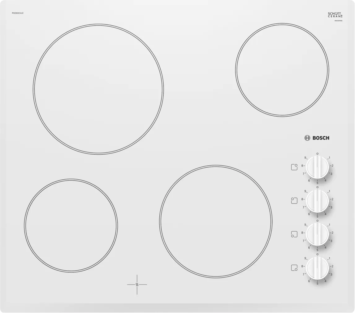Suprafata plitei fiind din cristal vitroceramic Schott Ceran, are un design elegant si este foarte usor de curatat. Datorita procesului de productie inovator dezvoltat si patentat de SCHOTT, acest model vitroceramic de la Bosch este produs fara a se utiliza in procesul de fabricatie, arsenic sau metale grele. Aceasta solutie, unica in lume, asigura beneficii considerabile pentru mediul inconjurator. La sfarsitul duratei indelungate de viata utila, acest model de plita poate fi reciclat si reutilizat ca material de constructie. Puterea de radiatie termica a acestui model se face prin control mecanic al puterii in 9 trepte de putere, simplificand modul de utilizare. Selectarea nivelului de putere se face prin rotirea butonului de la 1 la 9. Indicatorul stare de eroare se va aprinde daca senzorul din dotarea va depista ca plitei nu incalzeste bine sau in cazul cand senzorul sa defectat. Cand aceasta semnalizare este activa, indicatorul de temperatura va afisa codul „E”. Aceste coduri de eroare vor servi la informarea personalului de intretinere pentru depistarea eventualelor defectiuni ale aparatului. Pentru protectia aparatului si a noastra aparatul are in dotare un indicatorul de caldura reziduala cu patru trepte de avertizare H/h unde dioda luminiscenta H avertizeaza utilizatorii cu privire la faptul ca zona de incalzire inca este fierbinte, chiar daca a fost dezactivata. Cand dioda indicatoare este aprinsa, inseamna ca temperatura din zona depaseste 60 sau 45°C. Caldura acumulata poate fi utilizata si pentru a incalzi preparatele.