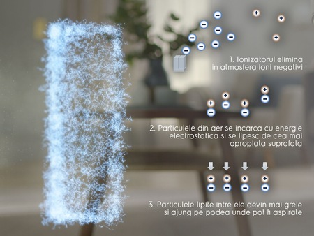 Fluxul de aer generat de ventilator este multi-directional, avand un orificiul tip grila ce este amplasat pe partea superioara a unitatii pentru a distribui aerul curat in incapere.