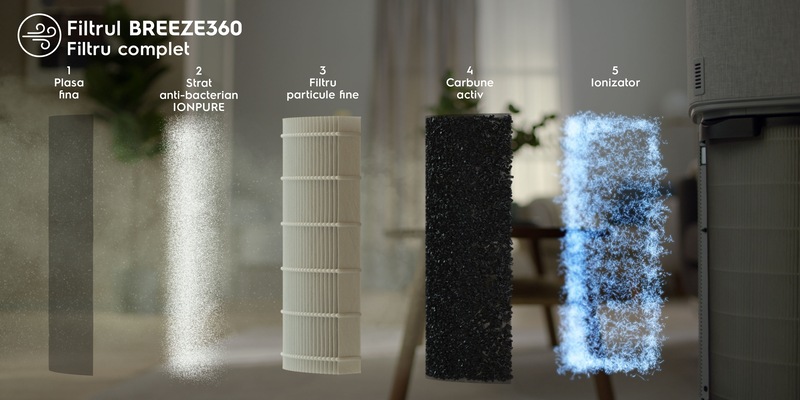Optional in plus ai ocazia sa achizitionezi si un filtru CLEAN 360 CADR 600, specializat numai pentru eliminarea particulelor ultra fine. Un filtru BREATHE 360 specializat numai pentru eliminarea polenului si alergenilor.