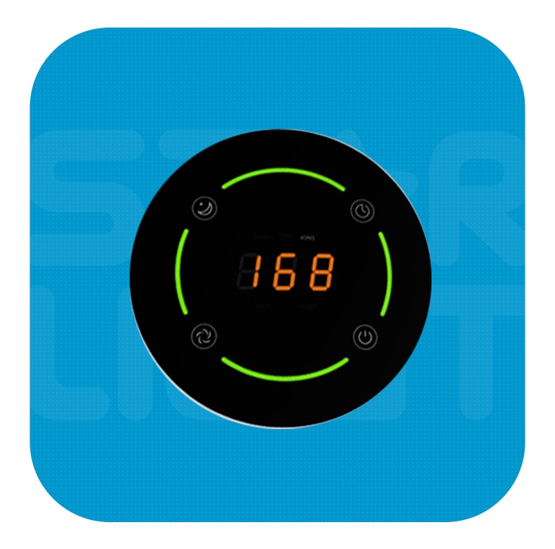 Panoul de comanda cu control digital, este plasat in partea superioara a aparatului ce consta dintr-un buton tactil On/Off de pornit/oprit si un buton tactil cu functia de ventilare. De pe acest panou de comanda poti seta: Modul de functionare si Viteza ventilatorului. Astfel in timpul functionari, se poate opta pentru 3 intensitati ale vitezei aerului: viteza 1/2/3. Cu modul de functionare Automat acest purificator datorita senzorului analizeaza calitatea aerului din incapere si astfel aparatul isi ajusteaza automat functionarea pentru a oferi conditii ideale in incapere. Cu modul de functionare Timer putem programa timpul de functioare de la 1 la maxim 12 ore, dupa care la expirarea timpului, aparatul se opreste automat. Iar la modul de functionare, aparatul va functiona cu viteza de ventilare in regim de noapte si cu viteza de ventilare in regim auto, totul pentru un comfort in orice moment. Programul Child Lock permite blocarea comenzilor purificatorului pentru a preveni pornirea accidentala sau modificarea parametrilor de catre copii in timp ce aparatul este in functiune.
