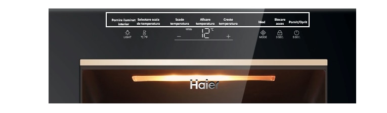 Panoul de comanda cu afisaj LED situat in exteriorul racitorului are control electronic avand butoane Touch-Control ce controleaza toate functiile aparatului frigorific. Pe acest panou de comanda regasim: Un buton senzitiv de pornire oprire On/Off a racitorului si de activare a functiei Wi-Fi; Un buton senzitiv cu care prin apasari succesive selectam conversia de masurare a temperaturi din interiorul aparatului frigorific in grade °C/°F; Un buton senzitiv prin intermediul caruia prin apasari succesive reglam temperatura in jos in spatiul de racire; Un buton senzitiv prin intermediul caruia prin apasari succesive reglam temperatura in sus in spatiul de racire; Un buton de selectare a spatiului de racire; Un buton senzitiv cu care activam sau dezactivam sistemul de iluminare din interior cu LED, ce se va aprinde sau stinge treptat; Un buton senzitiv cu care activam sistemul de blocare al panoului de comanda. Iar pe ecranul LED putem sa vedem afisarea temperaturi din interior, modul de functionare Demo, semnalizare blocare copii. Setarile de temperatura pe intervalul de la 5 pana la maxim 20°C, puteti sa le faceti in trepte de 1°C apasand scurt butonul. In schimb daca cele doua butoane sant apasate lung schimbarea de temperatura se va face mai repede. Astfel temperatura din zona de racire poate varia in functie de sortimentele de vin depozitate in interior. In continuare comenzile electronice dupa ultima apasare a butoanelor va comuta automat dupa 5 secunde, pentru a va arata pe ecranul LED temperatura reala din racitor. Cu butonul Mode puteti sa selectati temperatura si in functie de sortul de vin depozitat in racitor, astfel pentru soiurile de vin rosu temperatura recomandata este de la +14°C pana la +18°C. Pentru soiurile de vin roze temperatura recomandata este de la +12°C pana la +16°C. Pentru soiurile de vin alb temperatura recomandata este de la +10°C pana la +12°C. Pentru vinul spumant demi-sec sau Champagne/Prosecco, temperatura recomandata este de la +6°C pana la +8°C. Iar pentru sampanie temperatura recomandata este de la +5°C pana la +7°C. Daca depozitati vinul pe o perioada mai lunga, temperatura de pastrare este intre 10 si 12°C. Activarea acestui sistem de racire dinamic cu ajutorul unui ventilator garanteaza ca temperatura din interior ramane constanta, marind si umiditatea. Umiditatea mai ridicata va impiedica uscarea dopurilor din pluta o lunga perioada de timp. Daca aparatul frigorific funcționeaza la o temperatura ambianta scazuta, ventilatorul va porni automat pentru a uniformiza temperatura in interior. Modul de functionare Demo poate fi activat ca un mod normal de functionare, fara activarea functiei de racire, pentru prezentarea aparatului frigorific la expozitii sau in sali de vanzare. Programul Child Lock permite blocarea butoanelor racitorului pentru a preveni oprirea accidentala sau schimbarea setarilor de temperatura. Copiii se pot juca langa racitor, fara ca sa fie supravegheati permanent. Pentru un plus de siguranta acest racitor are prevazut si un sistem de inchidere mecanic al usi, cu ajutorul unei Yale.