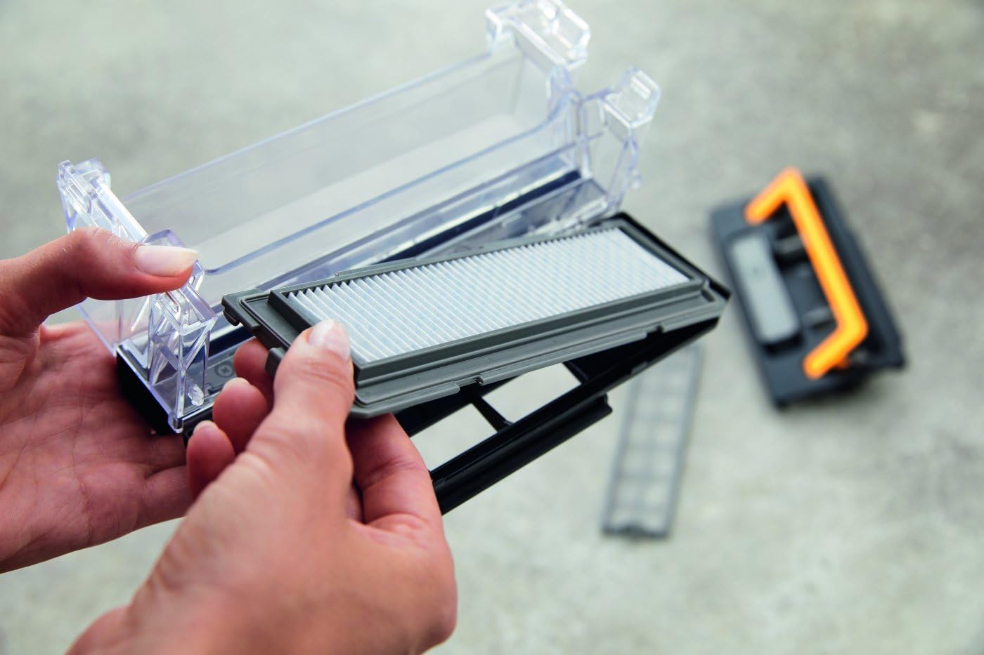 Aparatul este dotat si cu un filtru HEPA de eficienta foarte ridicata, filtrul putand fi curatat prin lovirea usoara a filtrului de cosul de gunoi. Filtrul de inalta eficienta captureaza pana la 99% din praf, acarieni si alergeni cu marimea de pana la 10 microni. Pentru a pastra acestui sistem de filtrare o eficienta ridicata filtrului HEPA trebuie inlocuit la fiecare 3 luni si in functie de frecventa de utilizare, pentru a mentine cel mai bun rezultat de filtrare posibil.