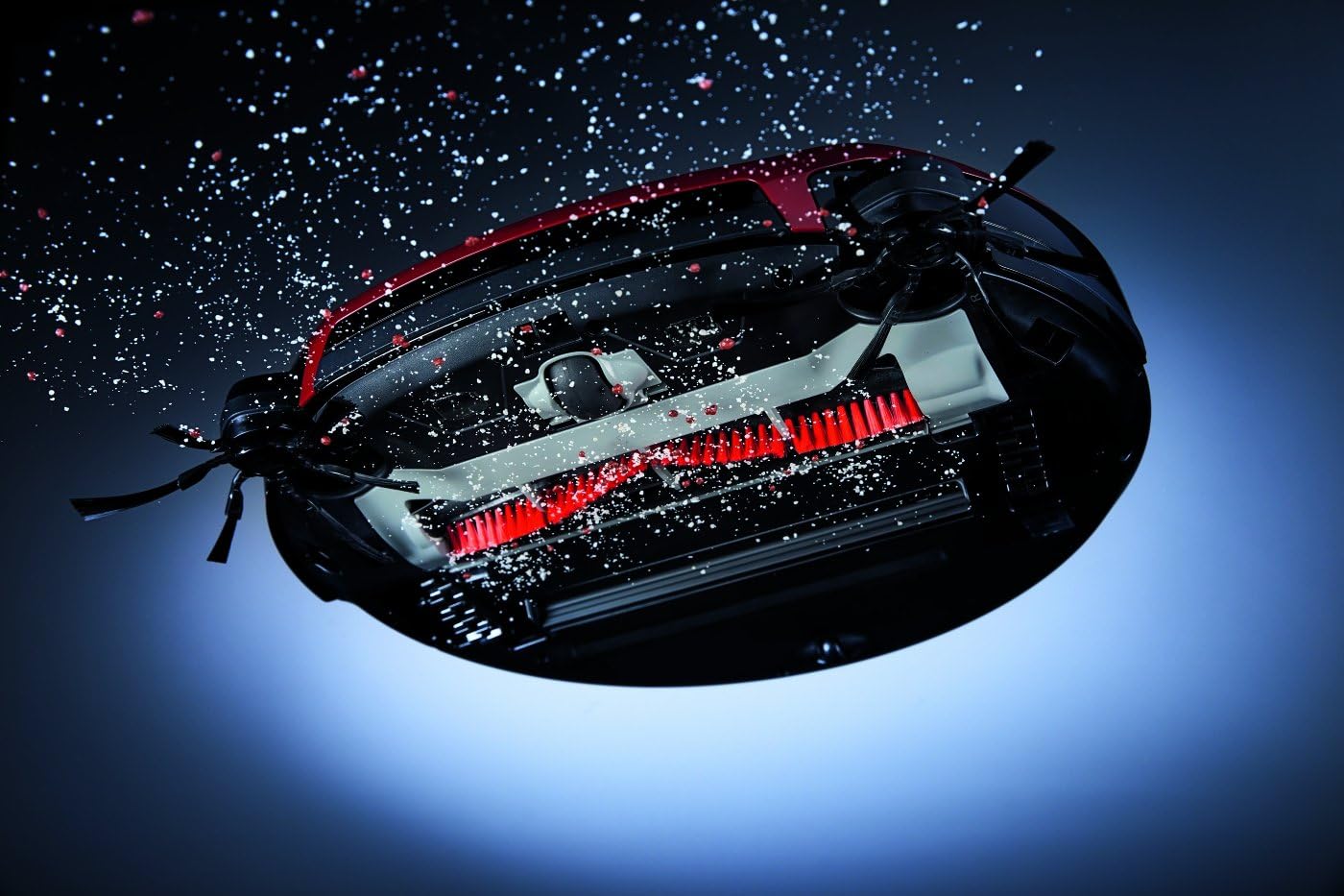 Capul de aspirare al acestui aspirator robot cu frontul de curatare de 120 mm este ajustabil, ce adapteaza inaltimea robotului astfel incat sa tina periile multi-suprafata la nivelul podelei sau al covoarelor. Cele 2 perii rotative disloca si aduna murdaria si praful de pe traseul robotului si o imping spre capul de aspirare. Apoi, capul de aspirare aspira murdaria si praful prin fanta de aspirare, datorita motorului sau puternic. Periile laterale au o miscare rotativa spre interior cu tehnologia flexibila de a iesind in exteriorul sasiului pentru a aduna mizeria si in colturile incaperi, urmand a o directiona spre capul de aspirare. Cu peria motorizata in forma de V, care se roteste, robotul poate realiza o deplasare mai usoara in special pe suprafetele acoperite cu covoare. In acest fel, robotul poate obtine o curatare avansand, inainte si inapoi, pentru o curatare mai aprofundata si mai sistematica intr-o perioada mai scurta de timp.