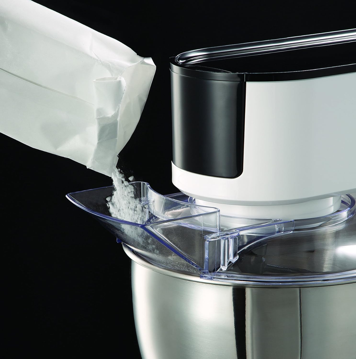 Telul metalic in forma de balon al robotului intra in actiune si creeaza albusuri pufoase cu o crestere a volumului de pana la 600% si o frisca perfecta cu o crestere a volumului de pana la 200%. Cu robotul poti pregati cu mixerul pana la 1,4 kg de amestecuri pentru tort. Timpul de utilizare al telului este de maxim 10 minute. Astfel crearea deserturilor delicioase nu a fost niciodata mai usoara. Acest model detine o multitudine de functii pe care le indeplineste foarte bine prin intermediul accesoriilor numeroase cu care a fost dotat, acestea sunt: accesoriu de framantat, carlig pentru aluat, tel, storcator de fructe, discuri de feliat si maruntit, masina de tocat carne, accesoriu carnati, accesoriu kebbe, dispozitiv de impingere, spatula din plastic si vas blender din inox.