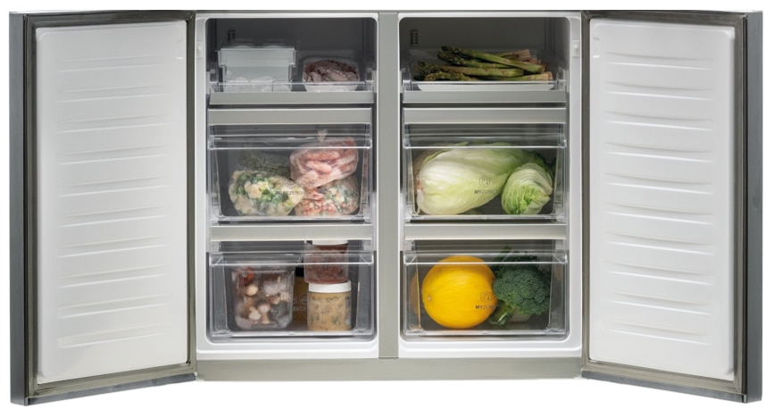 Pentru o functionalitate maxima aparatul datorita capacitati mari a frigiderului si a congelatorului a fost proiectat ca doua unitati independente cu un singur compresor de mare capacitate. Aceasta combina frigorifica de mari dimensiuni XXL, de uz casnic are doua usi în stil francez, in zona de refrigerare, fiind dotata cu cele mai noi tehnologii la un pret foarte bun.